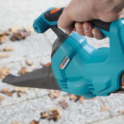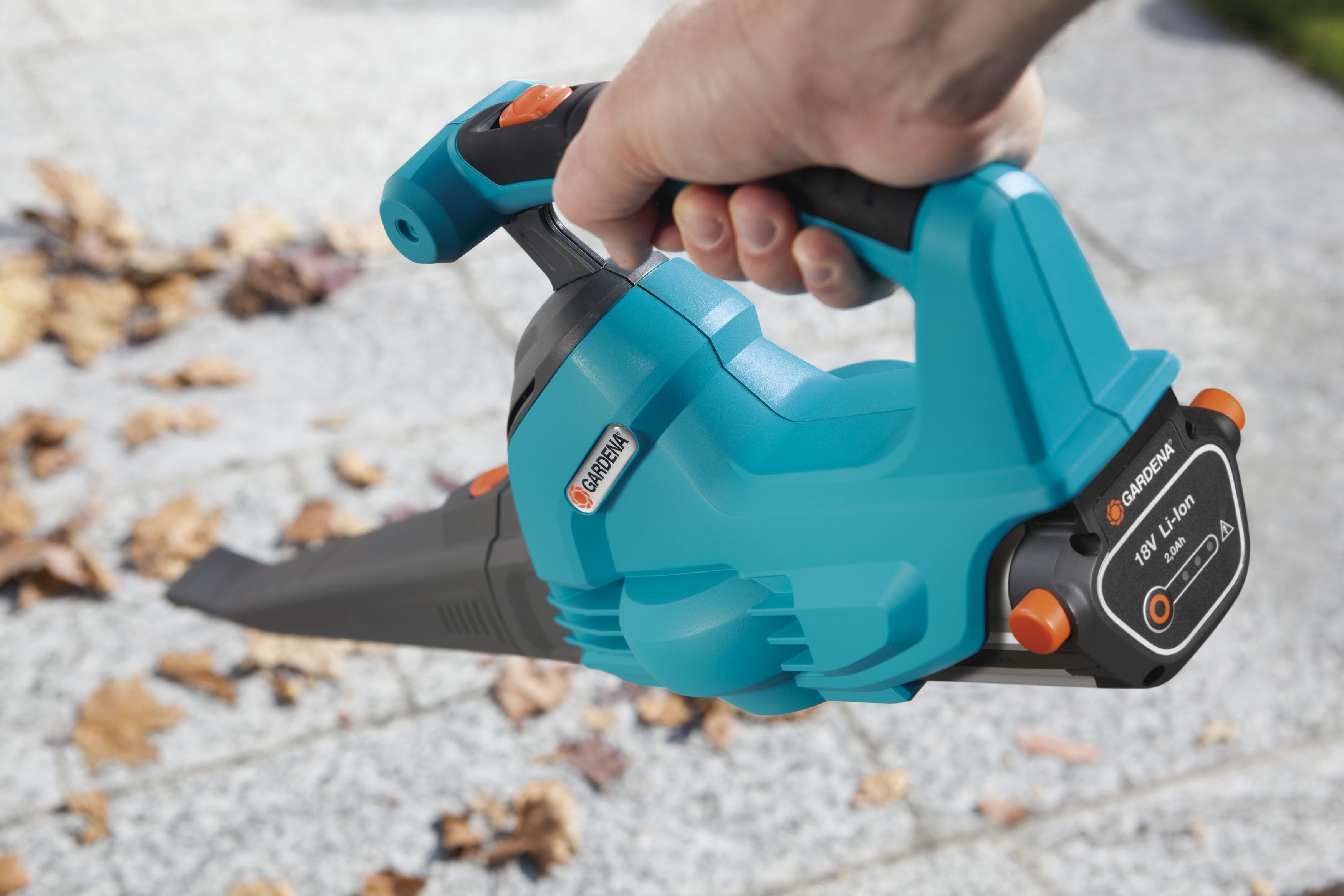 Per eliminare senza fatica foglie e residui che si depositano, il soffiatore è l’ideale. Gardena propone il modello a batteria AccuJet 18-Li, con una capacità di soffiaggio di 190 km/h.