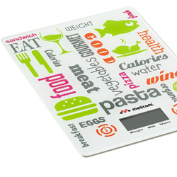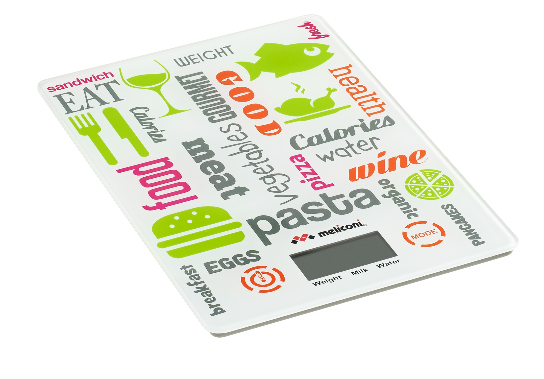 Colori vivaci e una fantasia adatta a qualsiasi ambiente giovane e allegro identificano Food, la bilancia elettronica Meliconi per alimenti, con funzioni “intelligenti” a portata di tasti touch.