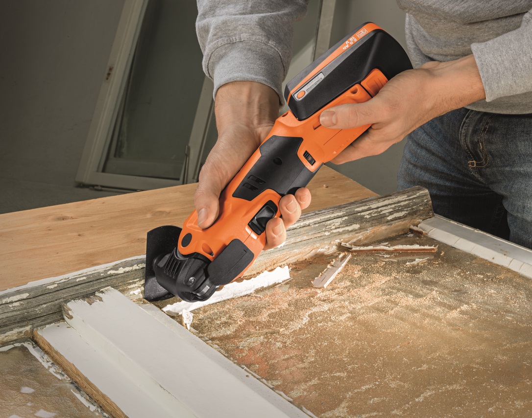 Indicato per l'impiego professionale nell'artigianato per l'esecuzione di numerosi lavori di ristrutturazione e rinnovo, il nuovo FEIN MultiMaster a batteria è dotato di un motore potente ed efficiente DC e di un'ampiezza di oscillazione di 1,7 gradi per lato.