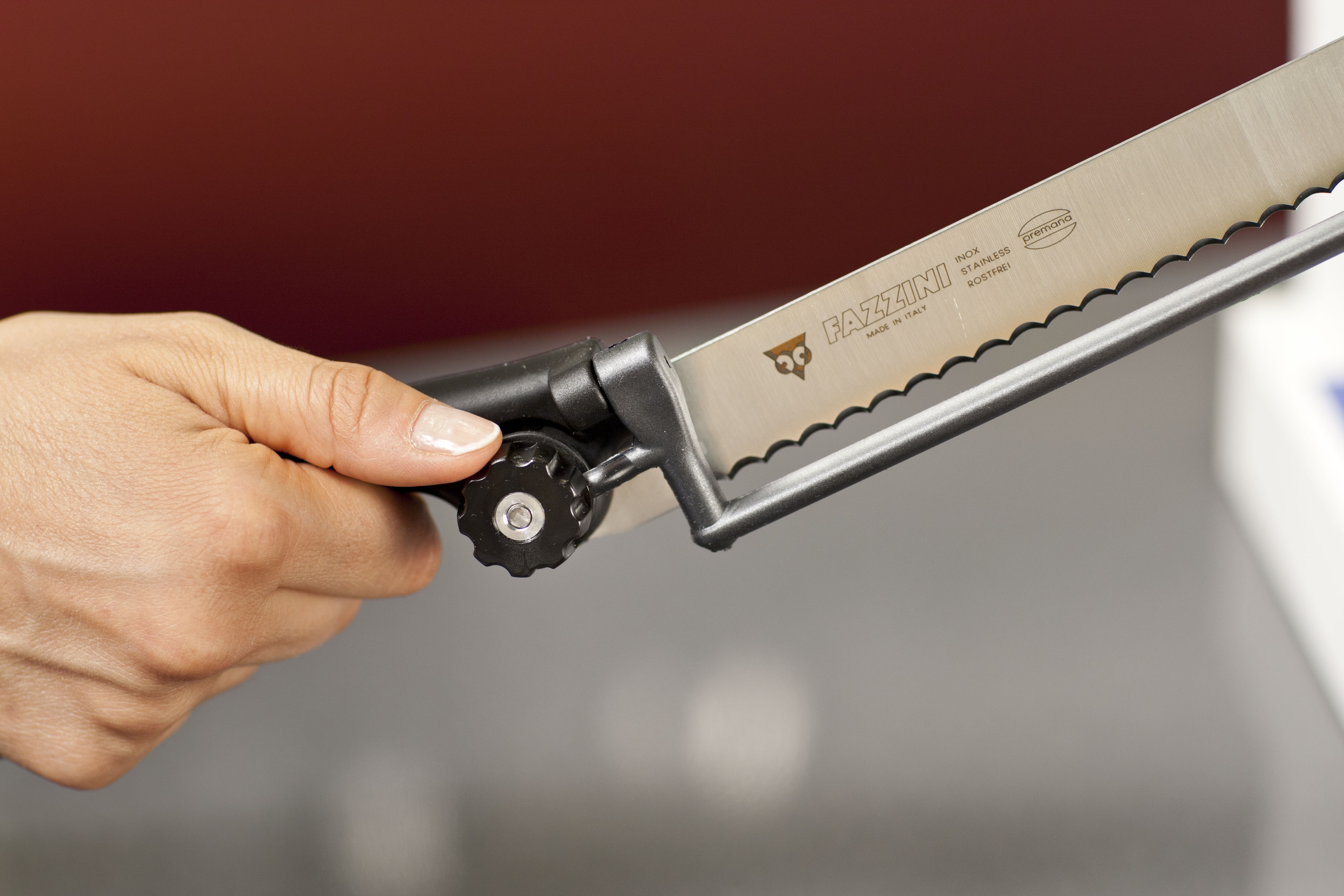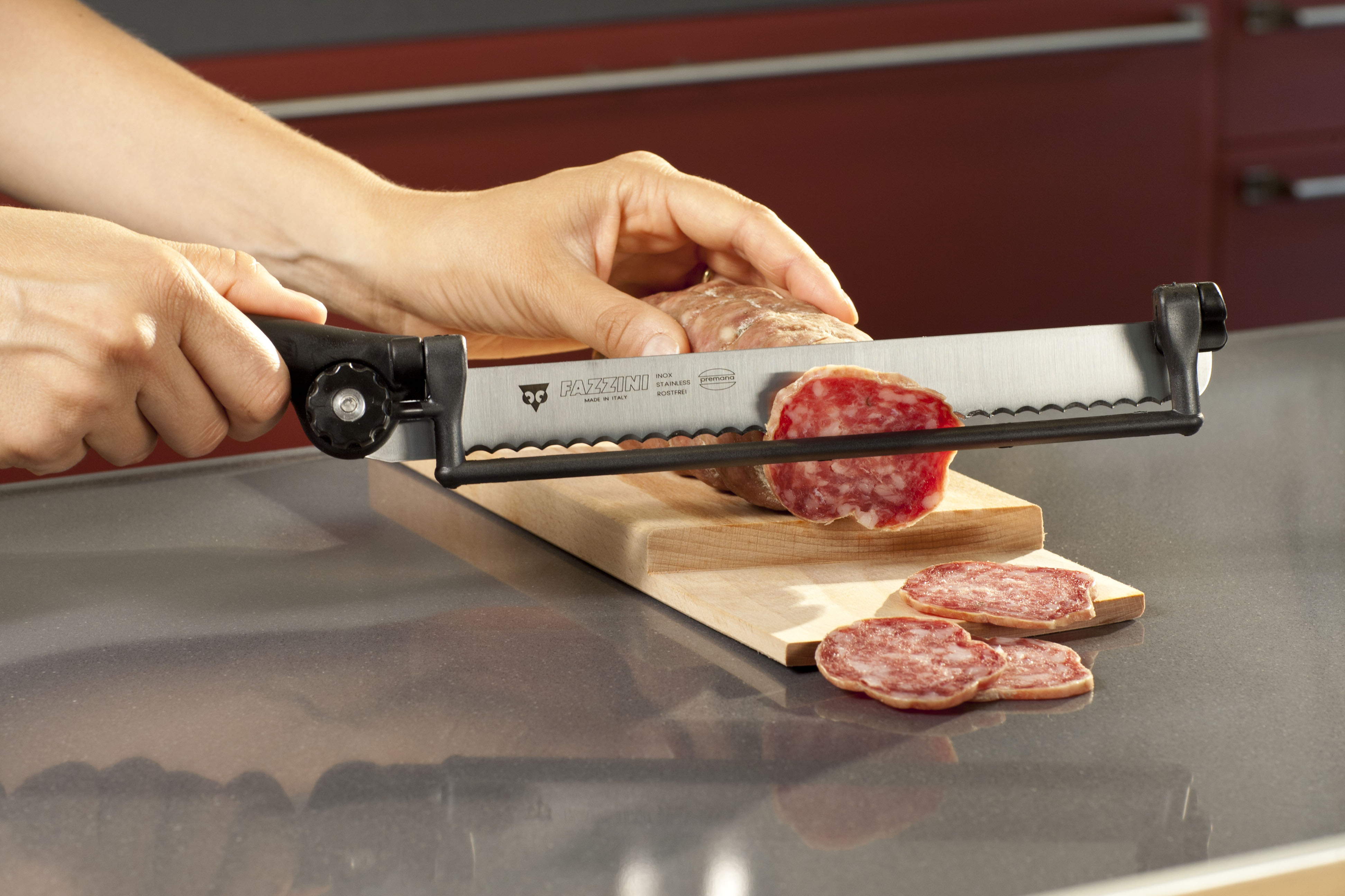 Mio Multiservice, proposto da Fazzini Technology, è il coltello multiuso da cucina con regolatore di taglio che sostituisce l’affettatrice e permette di ottenere in modo semplice fette tutte uguali e dello spessore desiderato.