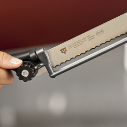 Abbinato al suo pratico tagliere in legno, la lama con la sua particolare seghettatura e la guida di riferimento ne fanno un coltello da cucina unico e indispensabile per affettare pane, dolci, carni cotte, salumi, frutta e verdura. Una volta terminato l’utilizzo del coltello da cucina Mio Multiservice, chiudendo la vite la guida costituirà una protezione per la lama e una sicurezza in più per l’utilizzatore.