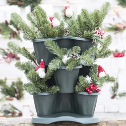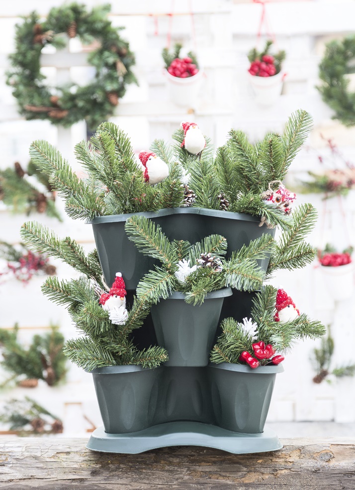 L’innovativo vaso Trifoglio di Bama è una soluzione sovrapponibile per piante e fiori che permette di creare composizioni su più livelli di altezza per un magnifico risultato scenico e in questo caso diventa un particolarissimo e contemporaneo albero di Natale. Trifoglio è resistente agli sbalzi di temperatura, agli urti e ai raggi solari ed è garantito tre anni. Disponibile in tre diverse colorazioni a scelta. Le dimensioni sono Ø40x16h e la capienza è 6 litri.