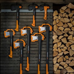 La nuova gamma di asce Fiskars è composta da 8 modelli divisi per taglia e utilizzo: tre asce universali per lavorazioni boschive, carpenteria, potature ed escursionismo, e ben cinque asce da spacco, per legna da ardere e progettate per spaccare anche i ceppi più grossi in un solo colpo.