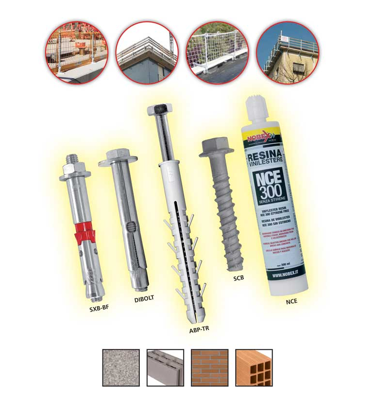 Nobex affronta questa esigenza degli operatori da tempo consigliando ai suoi clienti alcuni fissaggi meccanici e plastici che possono essere utilizzati sia su materiali compatti sia su quelli non compatti, come calcestruzzo o muratura o per quelle murature datate consigliando anche il fissaggio chimico.