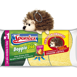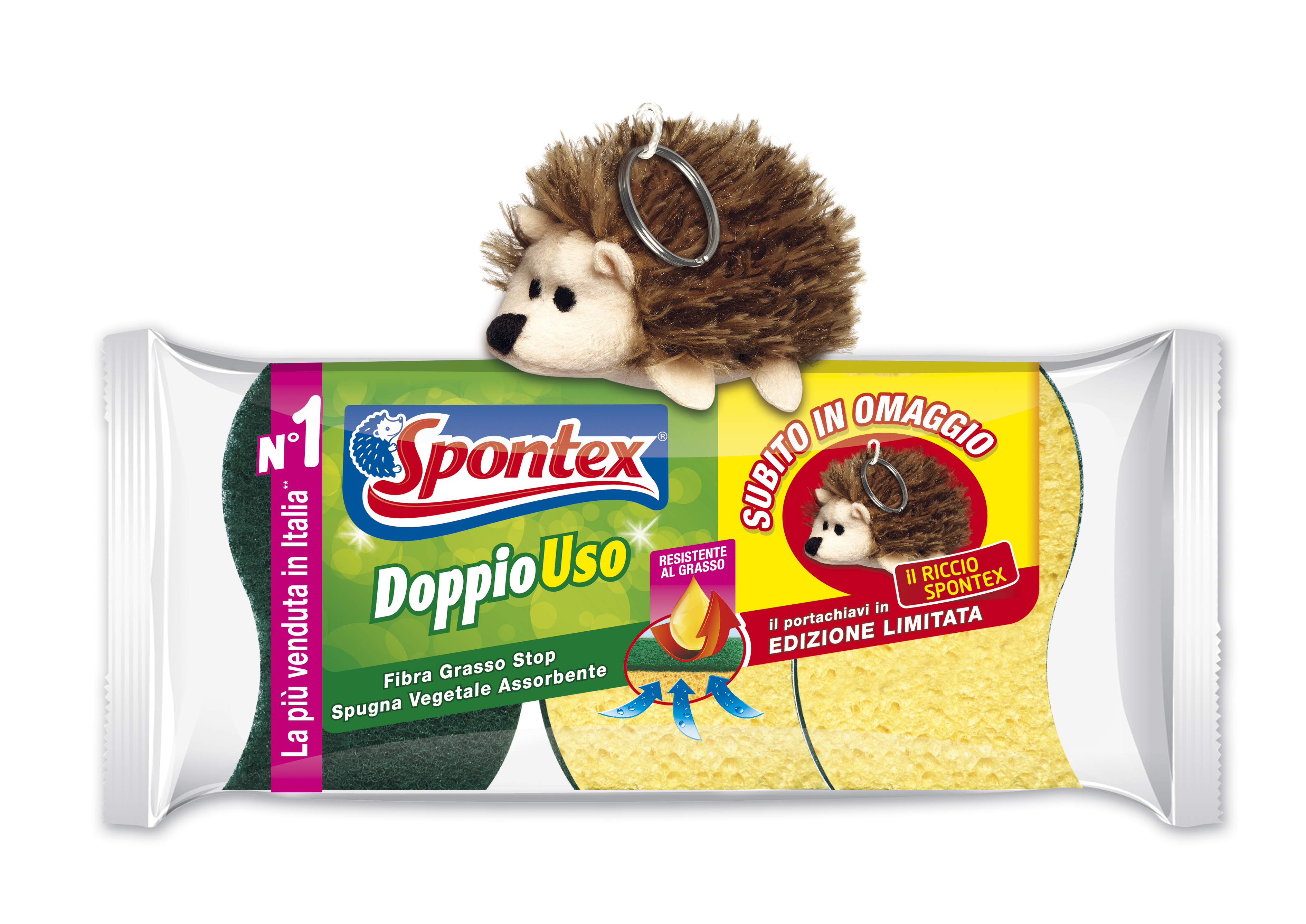 Spontex presenta in edizione limitata il multipack da sei pezzi di Doppiouso, la nota spugna abrasiva, e all’interno della confezione c’è subito in omaggio il mitico riccio Spontex in formato portachiavi.