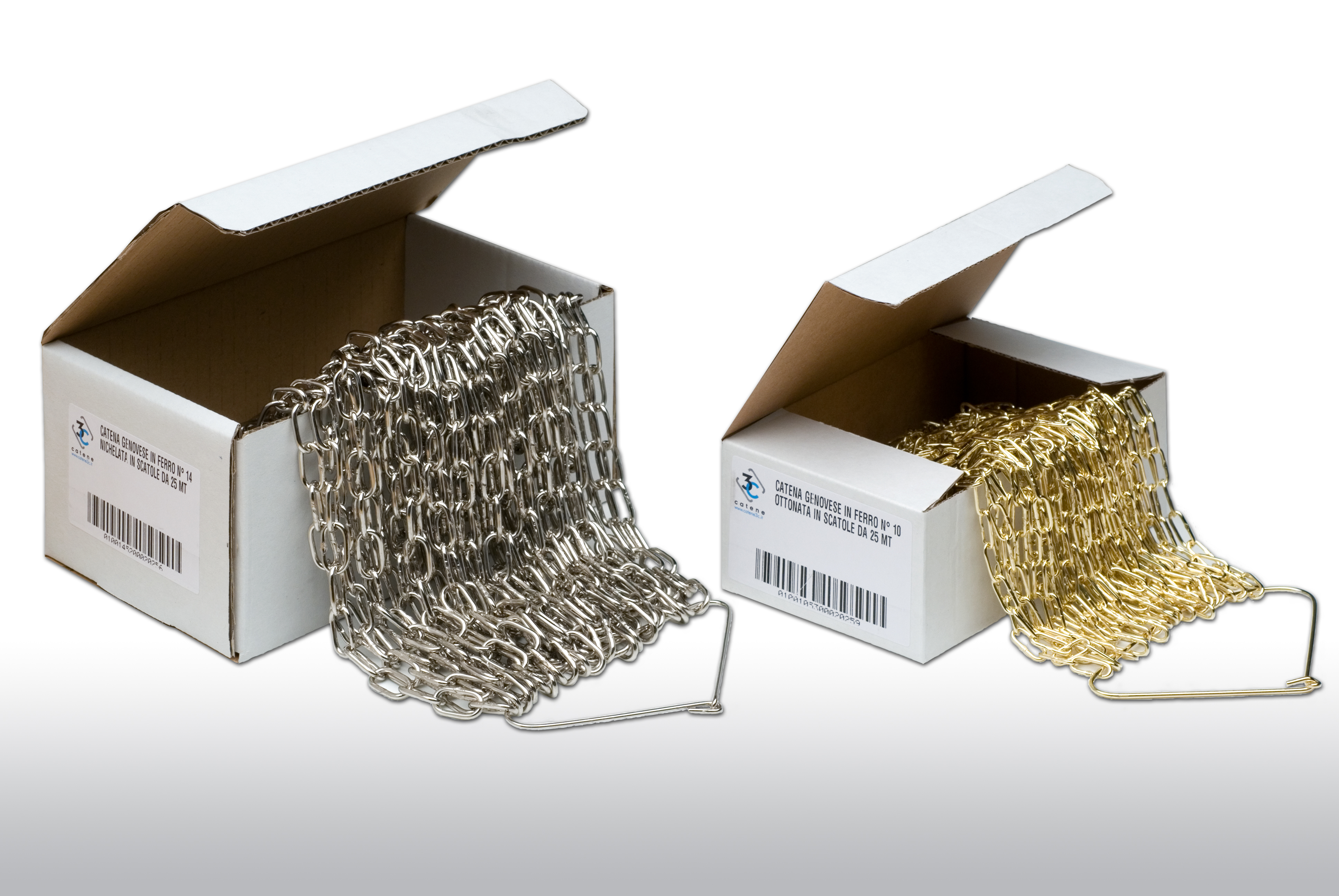 I prodotti di punta sono la catena nichelata-ottonata (disponibile in matasse da 25 mt confezionata in scatolette), la catena zincata in bobine e in scatole (le bobine possono essere in plastica o in metallo e sono disponibili in varie metrature). Le scatole contengono 100 mt lineari di catena e la catena in acciaio inox (disponibile in matasse da 25 o 50 mt).