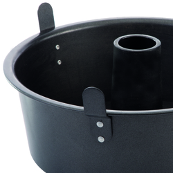 La angel cake e la chiffon cake sono due torte soffici e molto leggere; per prepararle serve uno stampo specifico, come quello di Tescoma, antiaderente che, grazie ai piedini di cui è dotato, permette di farle raffreddare capovolte e sollevate dal piano di lavoro; il procedimento è necessario a far sì che le torte non si sgonfino e rimangano alte e voluminose. Nella confezione è inclusa la ricetta per preparare la angel cake. Il diametro dello stampo è 26 cm.
