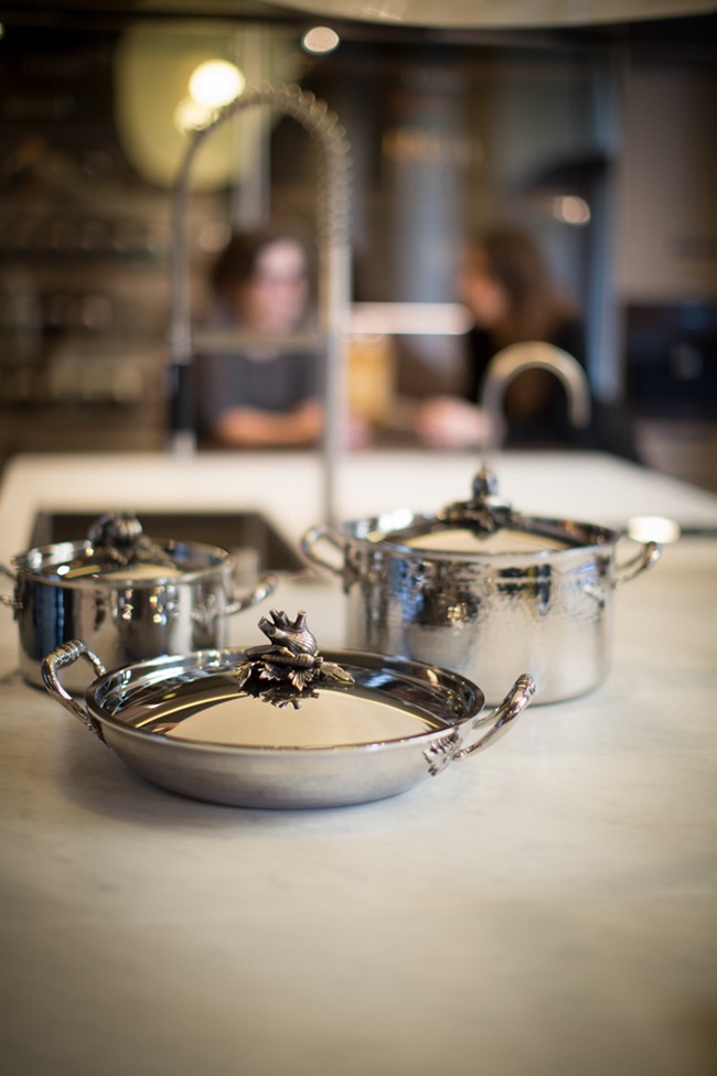 Ruffoni promuove la linea Opus Prima con finitura martellata dell'acciaio inox. Pentole caratterizzate da un nucleo in alluminio di spessore consistente rivestito da una lamina di acciaio inox finemente rifinita, lucidata a specchio e di facile pulizia; sono in grado di garantire una conduzione di calore rapida e uniforme e un controllo preciso della temperatura. Questi articoli sono adatti a tutti i piani cottura e sono lavabili in lavastoviglie (fatta eccezione del pomolo).
