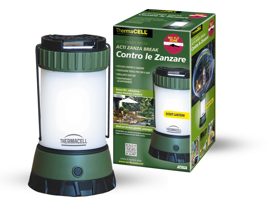 La lanterna antizanzare Thermacellè pensata soprattutto per il campeggio, coniugando in un solo oggetto due elementi fondamentali per godersi la vita all’aria aperta. Dotata di un comodo gancio per essere appesa e di una maniglia in gomma per essere facilmente trasportata, questa lanterna impermeabile emette una brillante luce led da 220 lumen, regolabile a diverse intensità. L’azione repellente è garantita da una bomboletta interna di gas butano, che grazie alla combustione senza fiamma sprigiona in 5-10 minuti l’energia necessaria a riscaldare una speciale piastrina, la quale agisce nel raggio di 20 mq contro zanzare, zanzare tigre e pappataci.