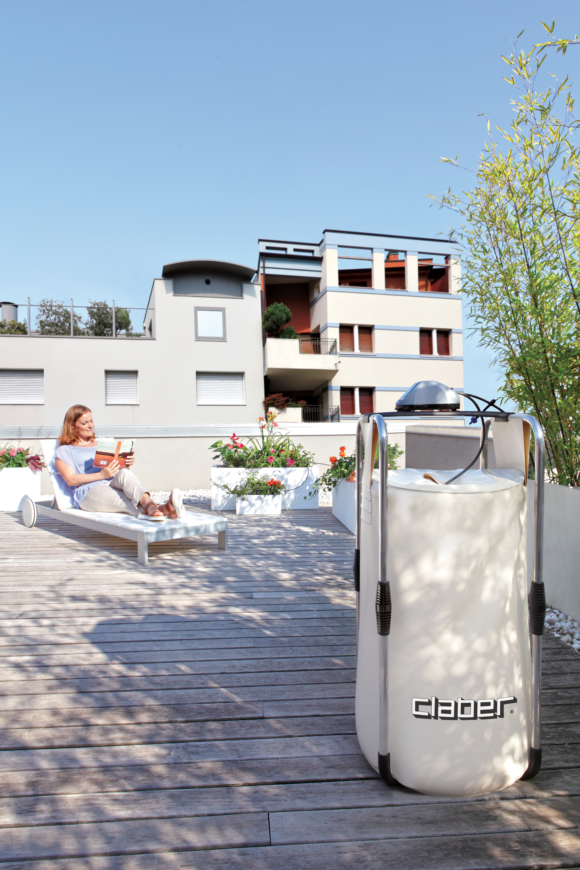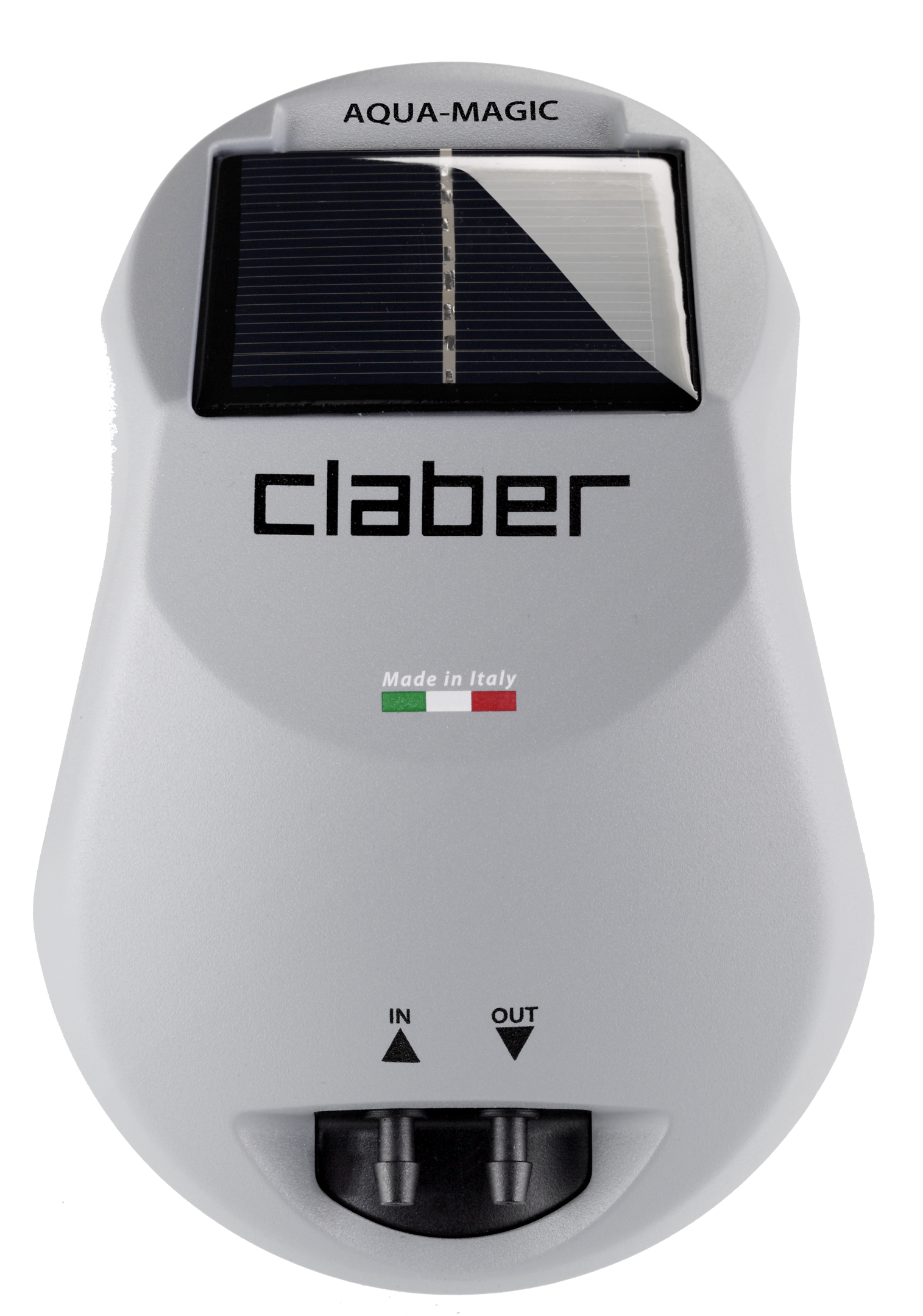 Innovativo sistema a goccia di Claberper annaffiare fino a 20 vasi, completamente indipendente da rubinetti e prese di corrente. Programmatore dotato di pannello fotovoltaico e piccola pompa solare integrati per sfruttare l’energia pulita e gratuita del sole, che viene accumulata in due batterie ricaricabili. Aqua-Magic System include, inoltre, tutti i componenti per realizzare il proprio sistema di irrigazione a goccia in terrazzi, balconi o piccoli orti sprovvisti di prese d’acqua e collegamenti alla rete elettrica. Facile programmazione con solo due manopole rotative per impostare quantità d’acqua da erogare e frequenza dell’irrigazione, fino a 54 diverse soluzioni. L’acqua può essere prelevata, tramite la pompa integrata, da qualsiasi contenitore d’acqua predisposto o da Aqua-Magic Tank (8061), lo speciale serbatoio pieghevole in PVC da 80 litri, realizzato da Claber, acquistabile separatamente.