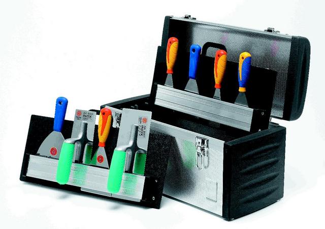 Un originale bauletto racchiude, come uno scrigno, quei gioielli tenuti tra le mani dai professionisti nell’applicare l’antica arte del marmorino. Questa è una delle proposte più apprezzate del marchio Ancora by Pavan. Il bauletto che contiene gli attrezzi Pavan, leggero e nel contempo robusto, garantisce una notevole praticità d’uso, data proprio dai comodi pannelli protettivi ed estraibili sui quali vengono inseriti gli attrezzi.