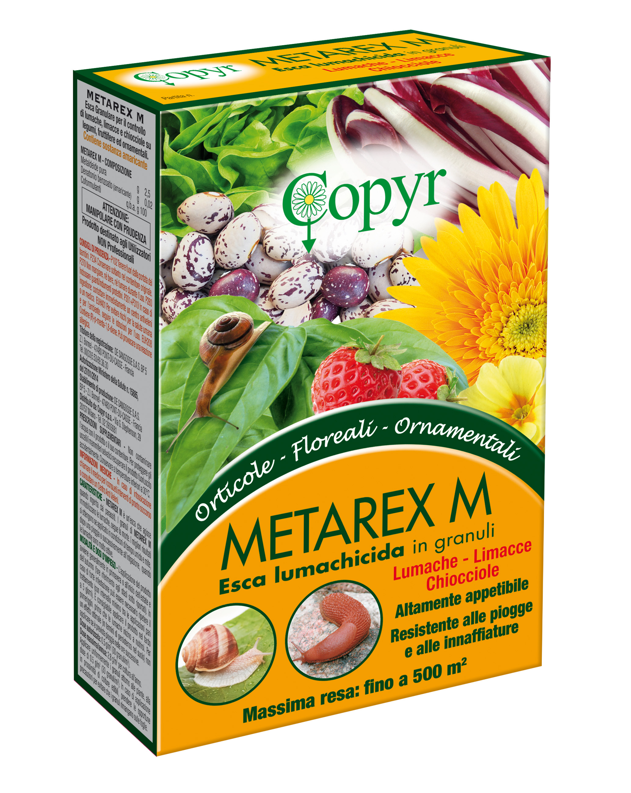 Copyrpropone Metarex M, un’esca lumachicida in granuli per il controllo di lumache, limacce e chiocciole su colture orticole (anche leguminose), frutticole e ornamentali. Il prodotto sfrutta le capacità olfattive delle lumache per assicurare la migliore attrattività, grazie alla presenza di sostanze appetibili che ne facilitano l’ingestione.