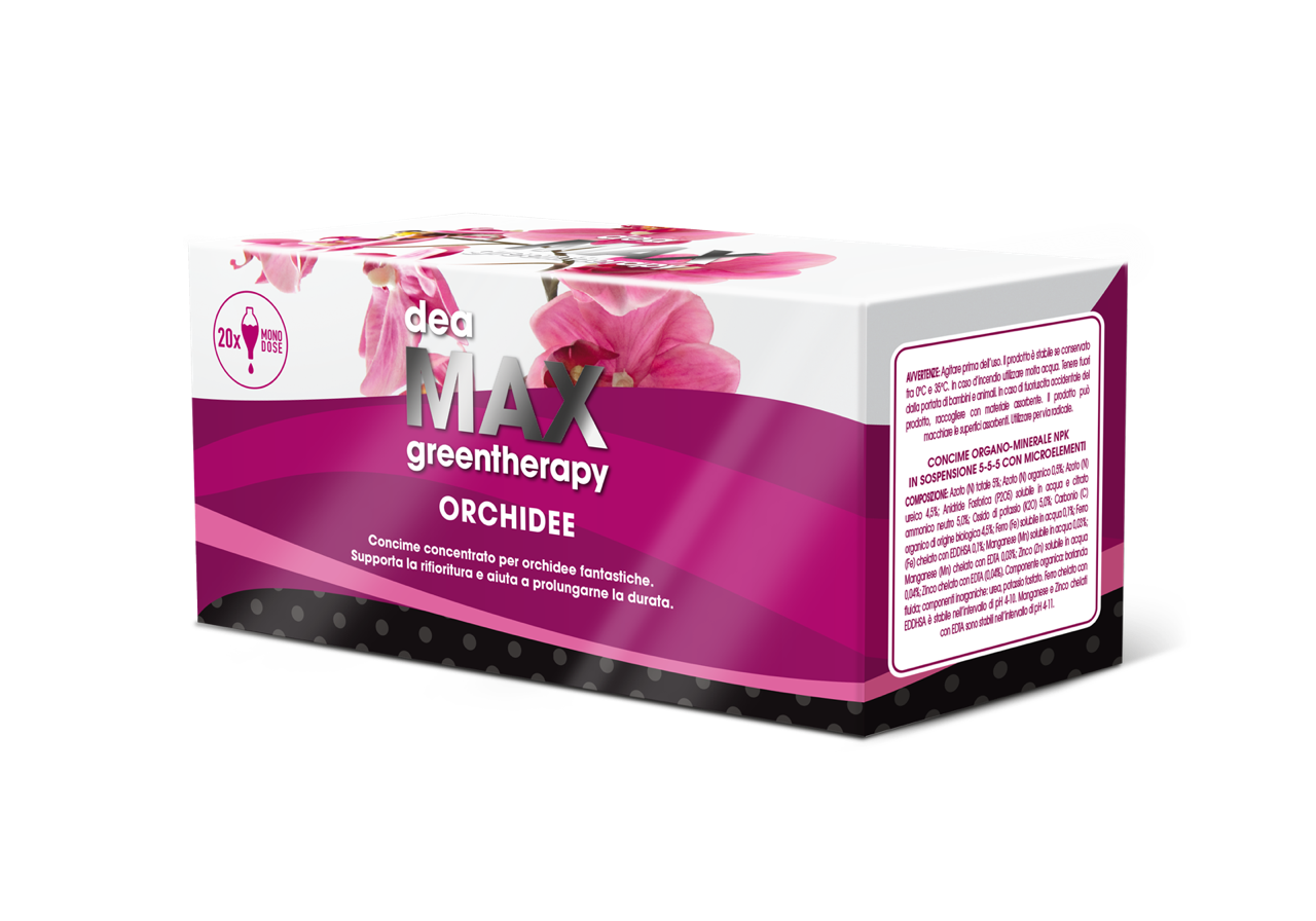 Per i numerosissimi amanti delle orchidee Valagroha pensato a un prodotto specifico, in grado di soddisfare tutte le esigenze nutritive di questi bellissimi fiori e coltivarli in ogni stagione. Si tratta di deaMAX, il nuovo concime liquido concentrato a base di estratti vegetali e microelementi che fa parte della linea Max di Valagro, studiata appositamente per offrire soluzioni efficaci per le carenze nutrizionali delle piante o per rispondere a stress di natura ambientale, garantendo loro benessere, salute e una crescita equilibrata. DeaMAX, in ampolle monodose, supporta la rifioritura delle orchidee, ne prolunga la durata ed è molto semplice da usare: ogni ampolla monodose contiene il quantitativo di prodotto da diluire esattamente in 1 litro d’acqua, per nutrire le orchidee in modo completo e senza sprechi. DeaMAX è disponibile in una nuova confezione premium da 20 ampolle monodose, per la massima resa con un ingombro minimo.