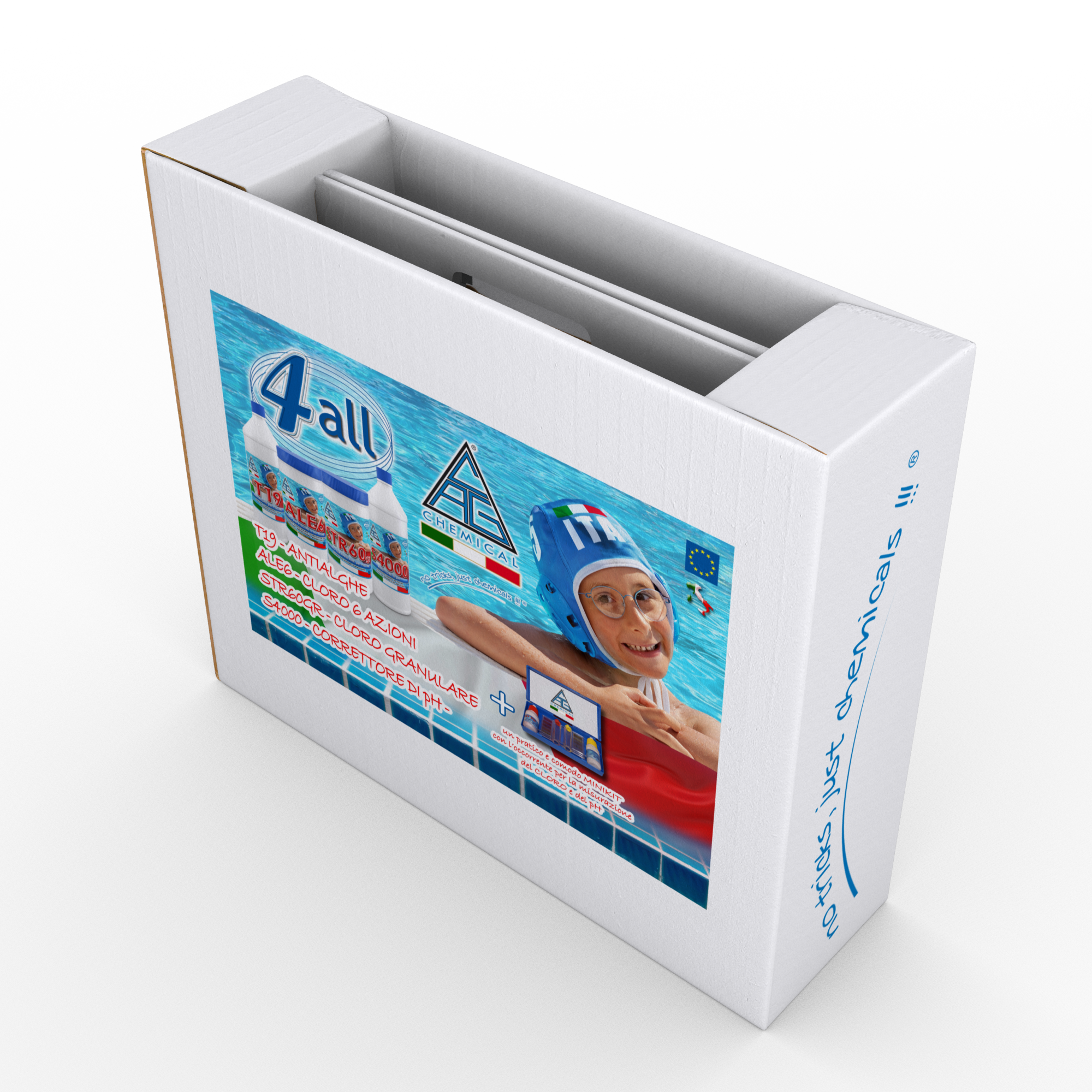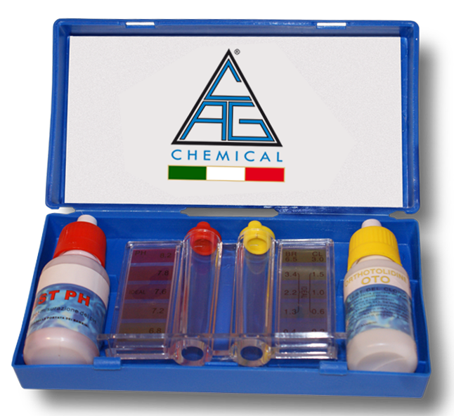 Per questa tipologia di piscine CAG Chemical Spa ha sviluppato con successo lo Start up kit “4All”, una comoda valigetta che contiene 4 prodotti più un mini kit per l’analisi del cloro e del pH.