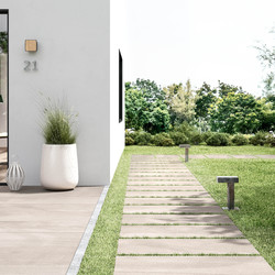 In foto, Sands Experience spessore 20 mm (Outdoor 20 mm) con venature e ricercati movimenti cromatici. I moduli Outfloor20 sono disponibili in due colori (black e flax), sono antiscivolo, classificati come R11 (A+B+C).