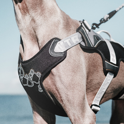 È regolabile sul collo e sul torace e ha una terza cintura regolabile in vita che funge da soluzione anti fuga e che permette un più sicuro recupero del cane.