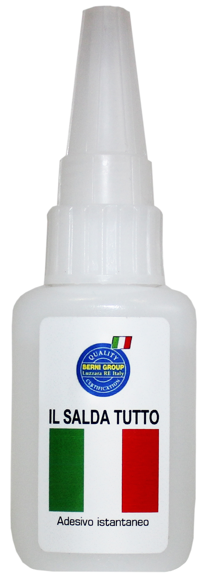 Salda Tutto è una nuova formula di colla istantanea a base di cianocrilato con barattolo da 20 g. Speciale per incollare tutte le superfici in pochi secondi, vetro-metalli, legno, plastica, gomma, marmo, ceramica ecc. Indicata per saldare assieme due materiali diversi l’uno dall’altro, o riparate frammenti crepati.
