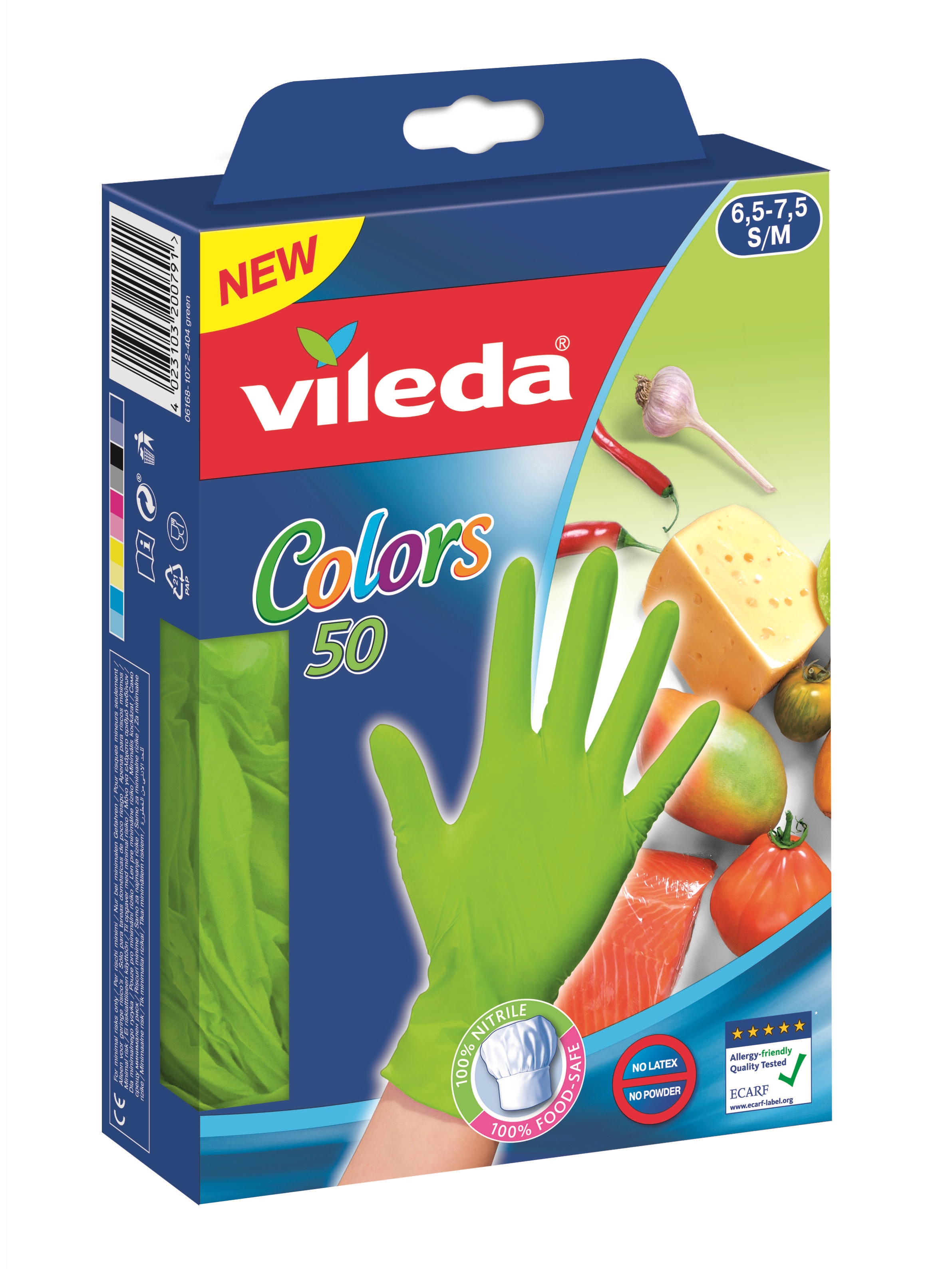 Viledapresenta i Guanti Vileda Colors 50, gli innovativi guanti usa & getta multiuso in nitrile, anallergici, ambidestri e idonei per uso alimentare.