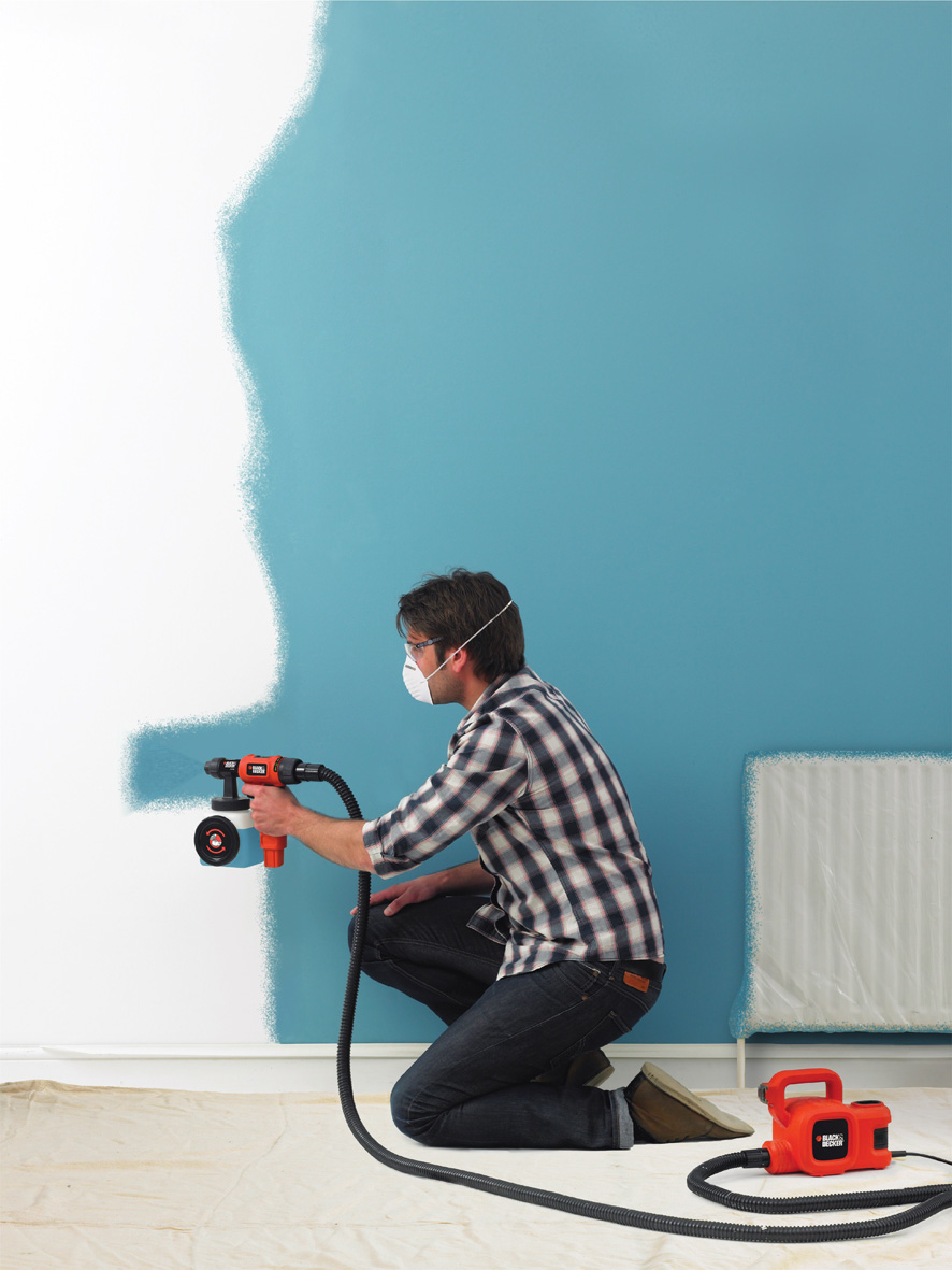 Per dipingere muri, caloriferi e mobili, la soluzione ideale sono le pistole a spruzzo per interni ed esterni Black+Decker™, efficaci anche in esterni su recinzioni e persiane in legno.