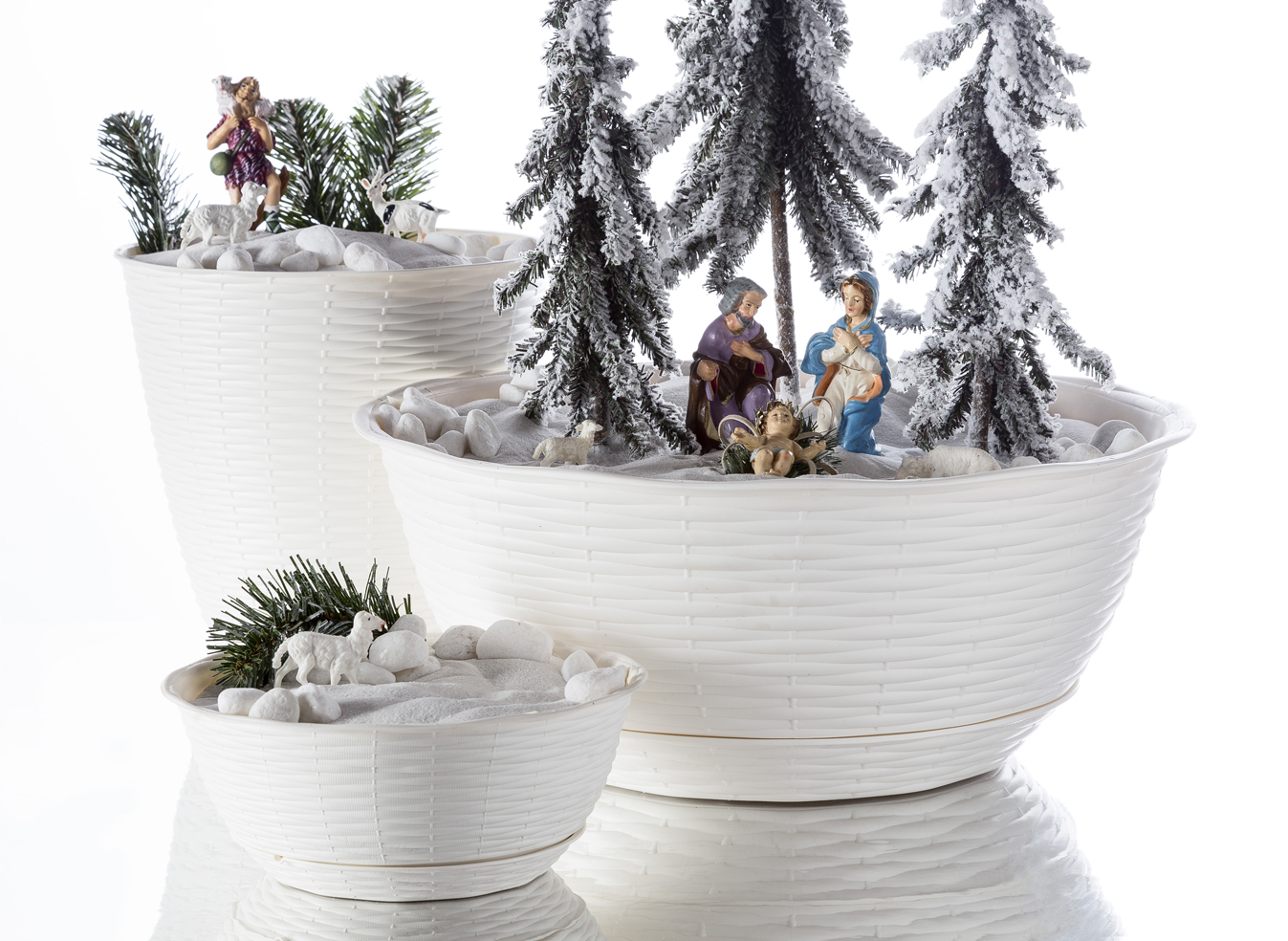 Sulla tavola apparecchiata, si può appoggiare come centrotavola un vaso Paglia rosso con inserite candele e decorazioni, ma anche un rametto di abete per profumare l’aria, mentre per il presepe, si può impiegare una ciotola Paglia panna e creare con le statuine un ambiente diverso dal solito.