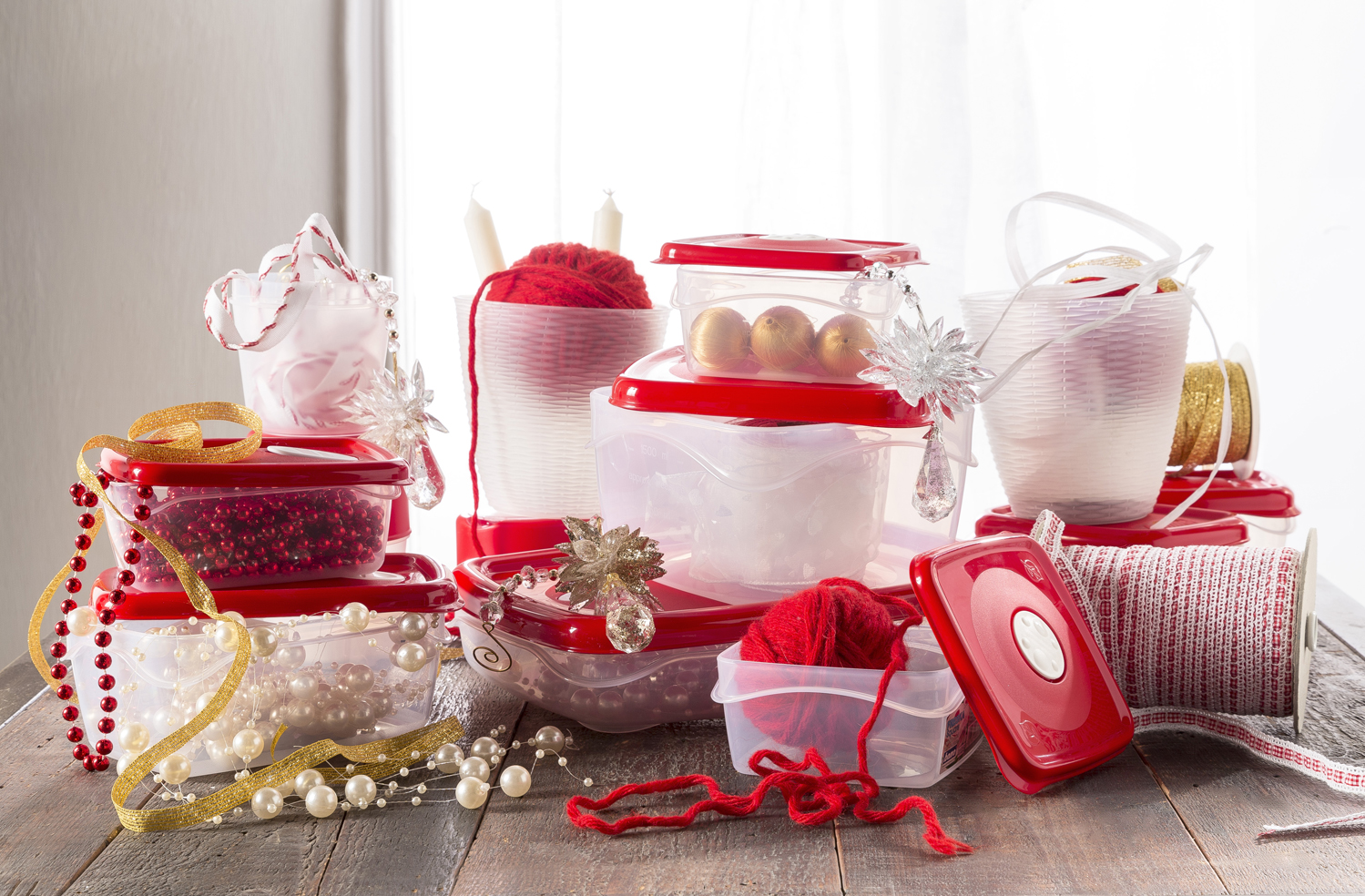 La prima idea è con i contenitori Freska che possono raccogliere palline, nastri, perline e brillantini.