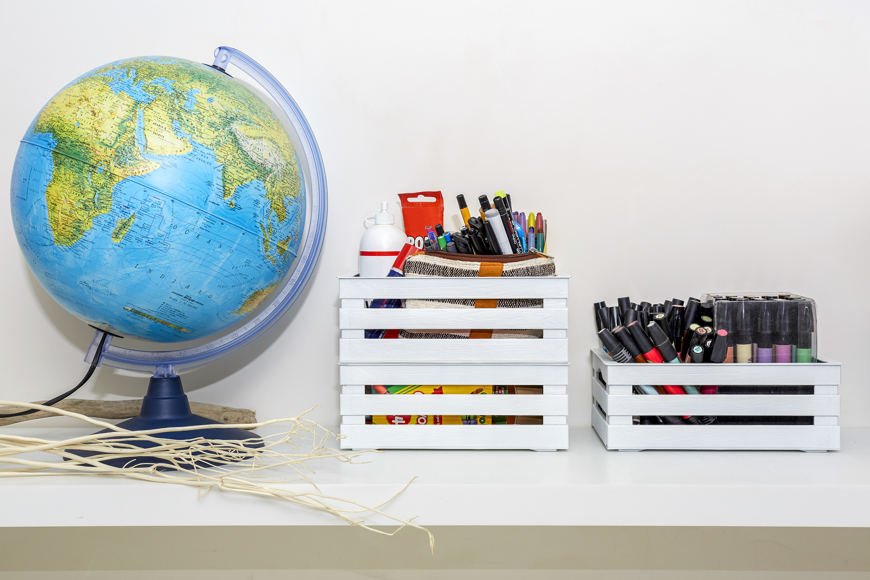 E in camera dei bambini tiene in ordine pennarelli, matite, colla ma anche videogiochi, CD e molto altro.