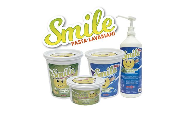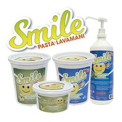 Da Nobex, la gamma professionale lavamani in pasta con abrasivo vegetale Smile. Contiene lanolina per ammorbidire l'epidermide e deterge le mani lasciandole morbide e con un gradevole profumo al limone.