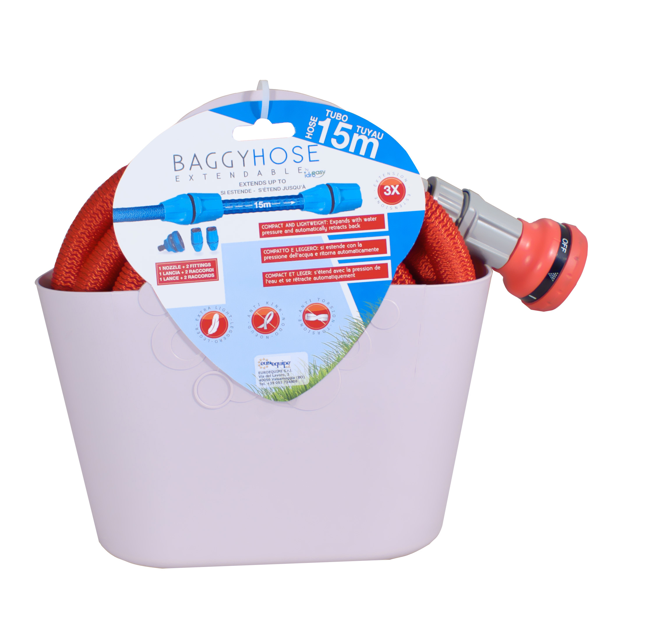 Idroeasycompleta la sua ampia gamma di tubi da giardino. Accanto alla linea di tubi estensibili brevettati made in Italy, Idroeasy propone quest’anno il nuovo tubo in stoffa Baggy Hose, che sfruttando la sola pressione dell’acqua raggiunge un’estensione pari a 3 volte quella iniziale. La sua struttura leggera impedisce la formazione di nodi e di torsioni, per un utilizzo facile e veloce. Il classico tubo estensibile in stoffa si colora e si arricchisce inoltre di nuovi accessori e di una confezione originale e riutilizzabile: si trova infatti in una pratica e vivace bag multicolor in plastica, disponibile in lilla, verde, nero e azzurro. Lungo 15 m, Baggy Hose occupa però pochissimo spazio una volta riposto e include raccordi e pistola multifunzione, risultando quindi il tubo perfetto per ogni esigenza. Idroeasy centra anche in questo caso l’obiettivo di semplificare la vita dei consumatori nelle attività quotidiane di giardinaggio, rendendole pratiche e rilassanti.