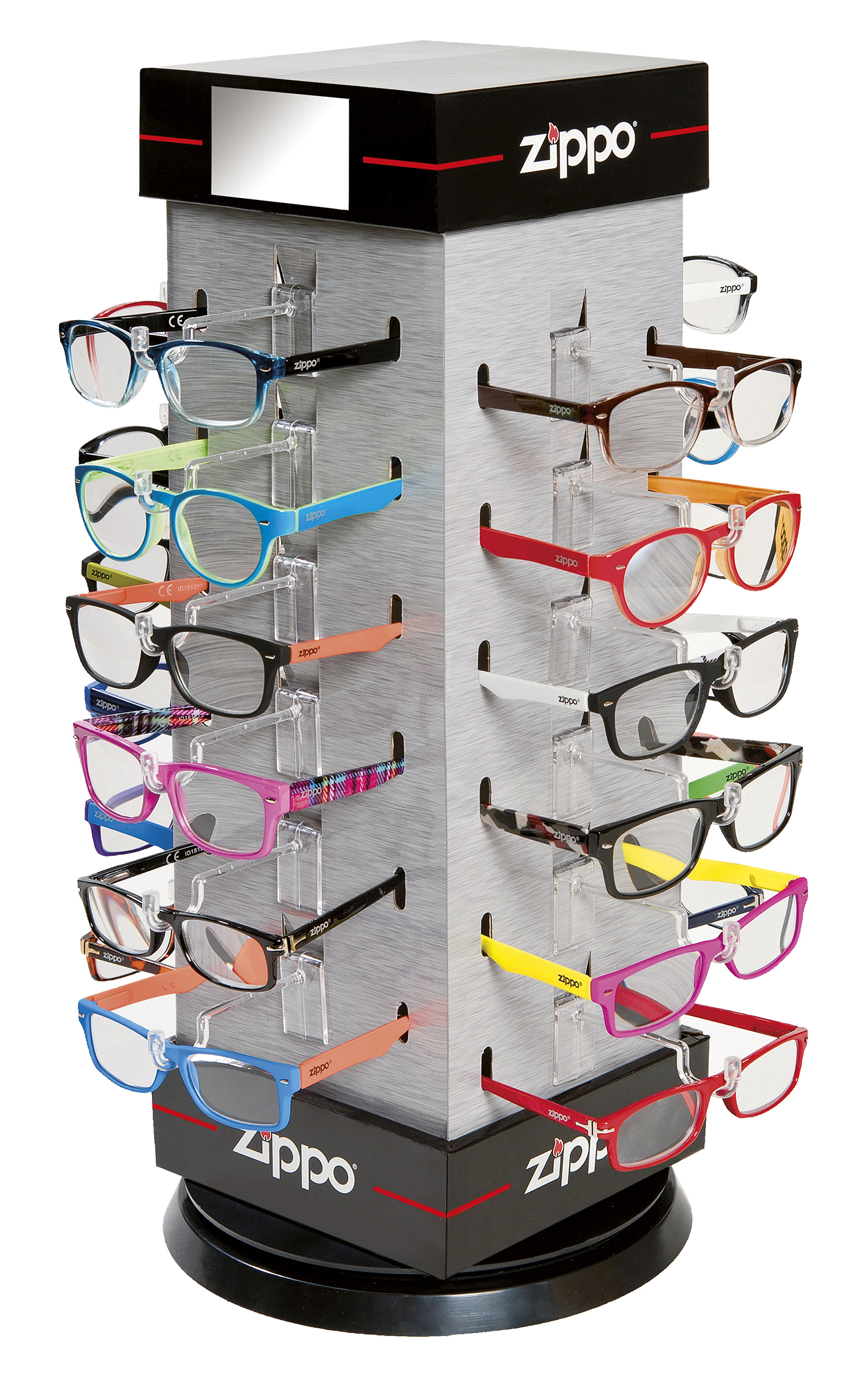 Gli occhiali da lettura Zippo hanno rivoluzionato un mercato stanco e monotono cambiando il concetto stesso di occhiali da lettura: rendendo “giovane” un prodotto che è tuttavia destinato ad un target maturo. La creatività del design, la qualità dei materiali, l’esposizione nel punto vendita e la notorietà del marchio, che da 85 anni è sinonimo di qualità e affi dabilità, hanno fatto esplodere una vera e propria “moda” degli occhiali Zippo.
