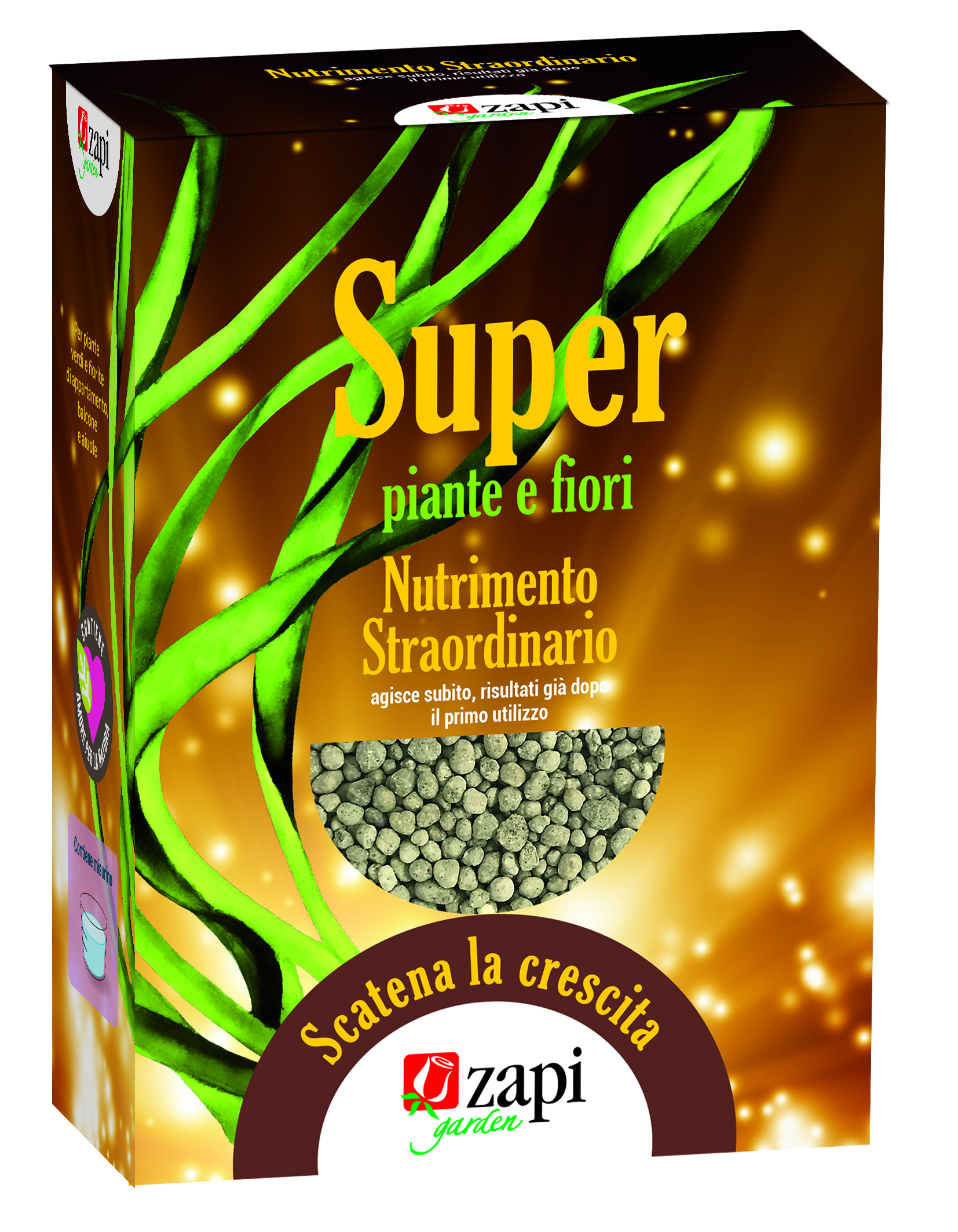 La linea Super rappresenta l’ultima evoluzione dei concimi Zapi Garden ed è stata creata per rispondere alle esigenze di un consumatore sempre più attento al benessere delle proprie piante, siano esse ornamentali, orticole o frutticole. I Super sono concimi contenenti tutti gli elementi nutritivi primari necessari alla pianta (azoto, fosforo, potassio) e alcuni microelementi (ferro, boro, zinco, rame, molibdeno), rinforzati da equilibrati componenti organici vegetali e biostimolanti in grado di interagire con il terreno e di migliorarne le proprietà e le caratteristiche chimiche, fisiche e biologiche. I risultati sono visibili già dopo la prima applicazione. I concimi Super fanno parte della linea Nutrilife, studiata da Zapi Garden per assecondare un acquisto emozionale d’impulso e per portare sugli scaffali dei prodotti colorati, attraenti, moderni e soprattutto efficaci per nutrire le piante con amore.