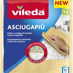 Piacevole al tatto se usato da bagnato, Vileda Asciugapiù è un prodotto estremamente completo che pulisce, asciuga e assorbe tutte le superfici, facendole brillare.