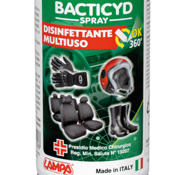 Per l’igiene completa dell’abitacolo, Lampa propone anche la linea Bacticyd: due bombolette spray da 150 ml nelle declinazioni Bacticyd Spray Ambienti, per la disinfezione dell’abitacolo ma ottimo anche per l’utilizzo domestico, e Bacticyd Tessuti, per la sanificazione localizzata di oggetti e materiali vari (caschi, calzature, tappezzeria).