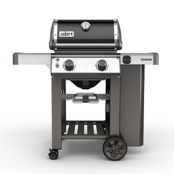 Barbecue a gas GENESIS II E-210 GBS di Weber. Sistema di cottura ad alte prestazioni GS4™ con: sistema di accensione rapida elettronico, bruciatori dalle alte prestazioni dalla forma rastremata per un flusso del gas costante e una distribuzione uniforme del calore, barre Flavorizer™ che catturano le gocce di grasso che causano fiammate e fumo conferendo un irresistibile sapore affumicato al cibo e GMS™ (Grease Management System) che previene le fiammate e facilita la pulizia. Griglia di cottura GBS™ in ghisa di acciaio smaltata, elegante design aperto del carrello, griglia di riscaldamento Tuck-Away™, ripiano laterale sinistro ripiegabile, agevole accesso alla bombola del gas, ganci portautensili integrati. Compatibile con iGrill 3.