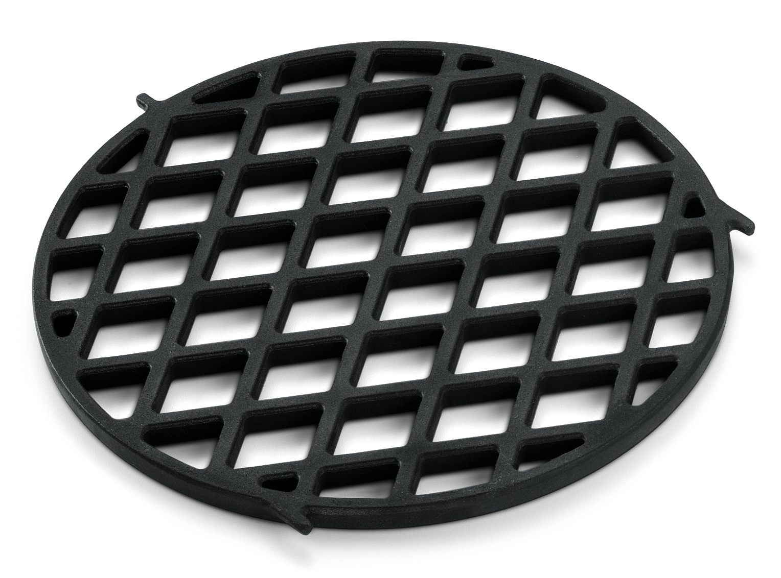 La griglia di rosolatura GBS in ghisa che, come tutti gli altri accessori GBS, si inserisce in una griglia di cottura vuota al centro, consente di rosolare rapidamente ad alte temperature per sigillare i succhi di bistecche, braciole e costolette. È antiaderente e distribuisce uniformemente il calore su tutta a superficie.
