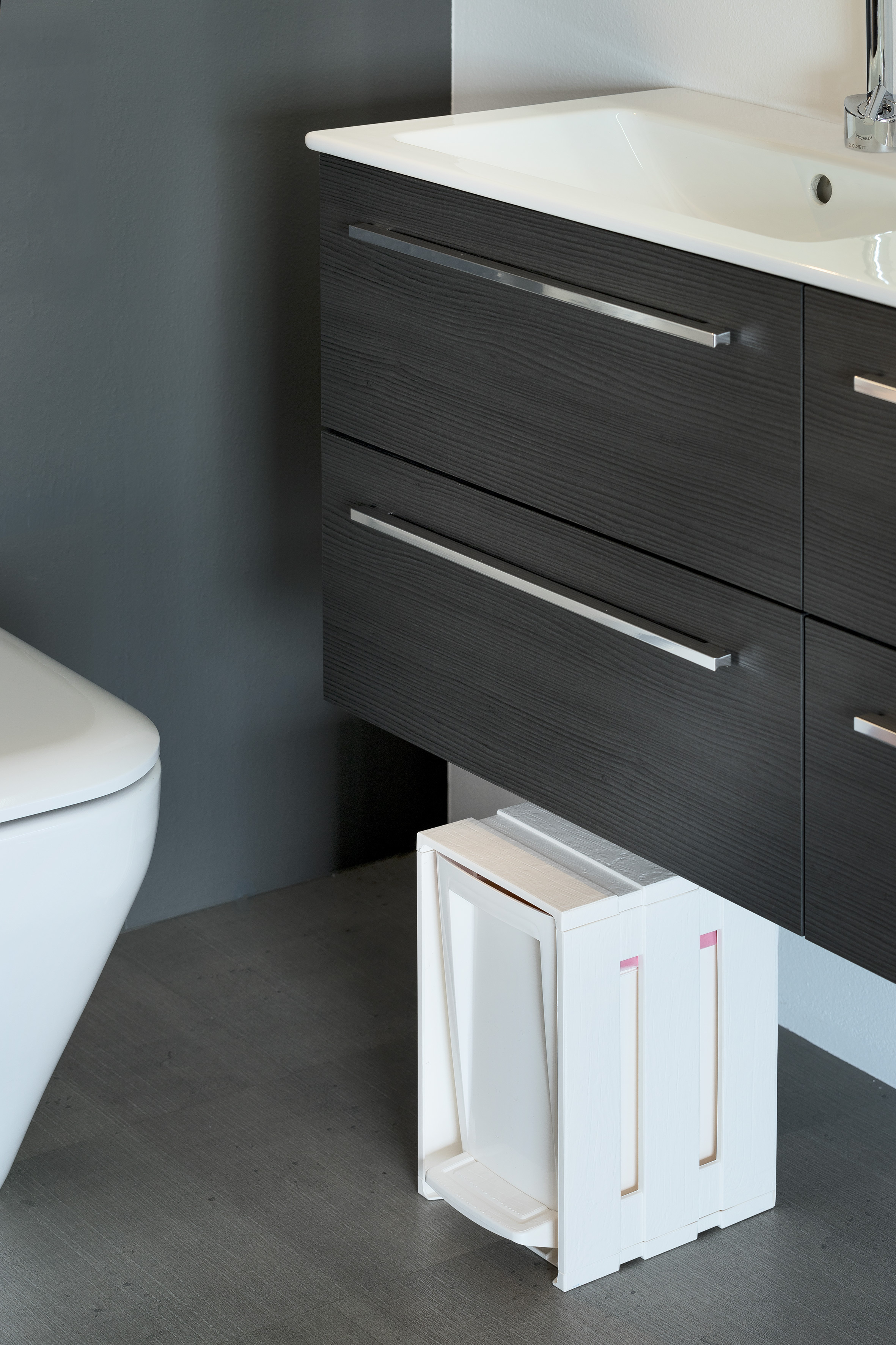 La pattumiera è dotata di speciale ferma sacco e di sistema antiribaltamento.