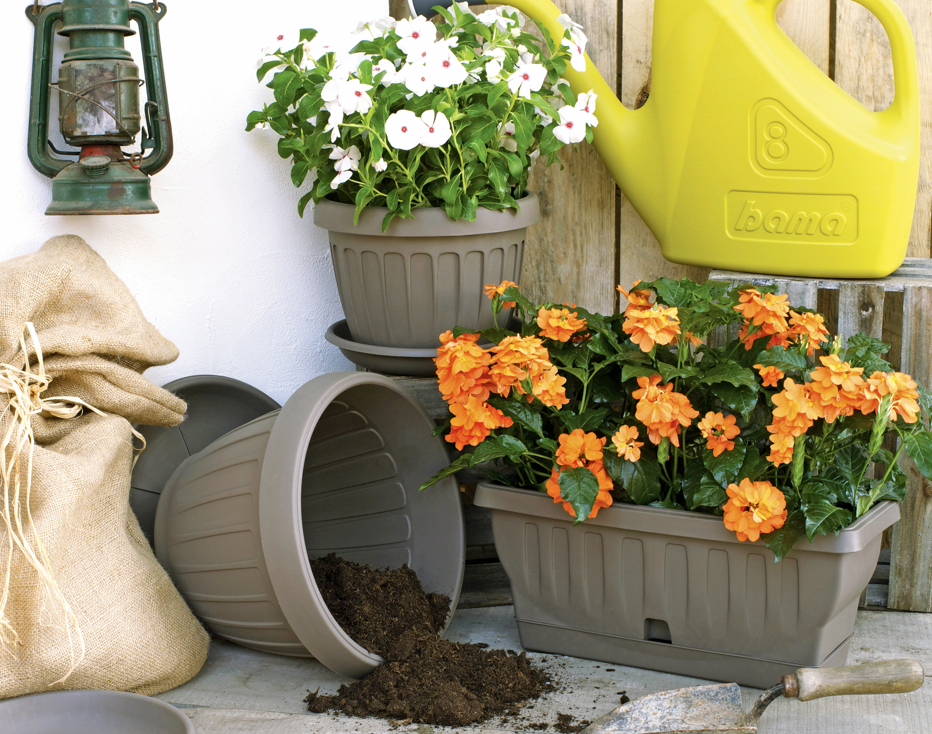È una linea coordinata e completa di vasi, dalla forma attuale e dal design attraente. Realizzata con resine certificate e atossiche, presenta una riconoscibile accuratezza in ogni dettaglio estetico e funzionale, assicurando affidabilità, resistenza e durata: resistente agli sbalzi di temperature, agli urti e ai raggi solari. Tutti i vasi, disponibili in varie dimensioni e capacità, sono garantiti 3 anni.