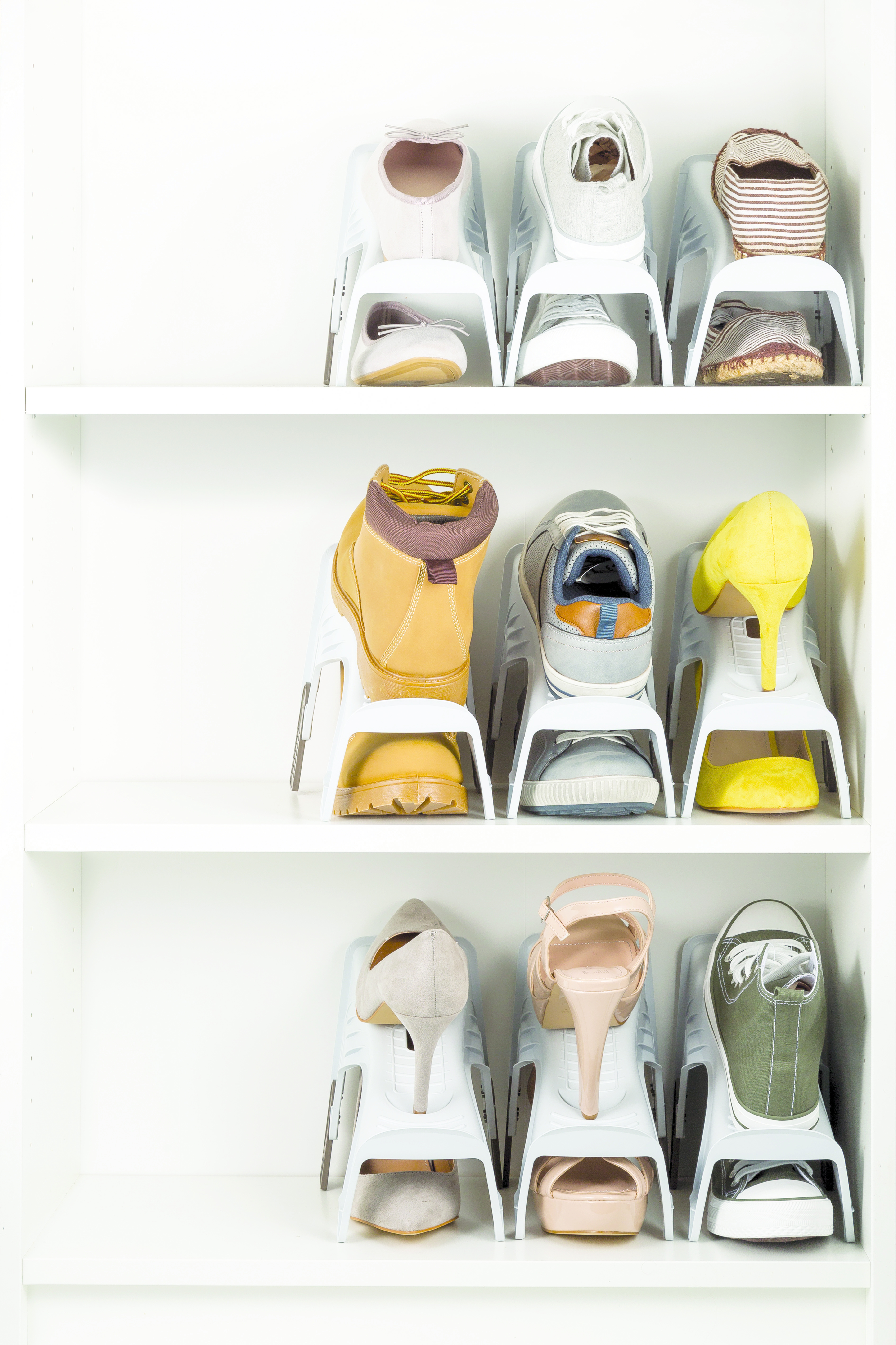 Con Lift appoggiascarpe salvaspazio, si posiziona una scarpa sopra all’altra, risparmiando spazio. Regolabile in altezza (max 19,5 cm e minima 15 cm) per contenere la maggior parte di tipi di scarpe, è dotato di superficie antiscivolo.