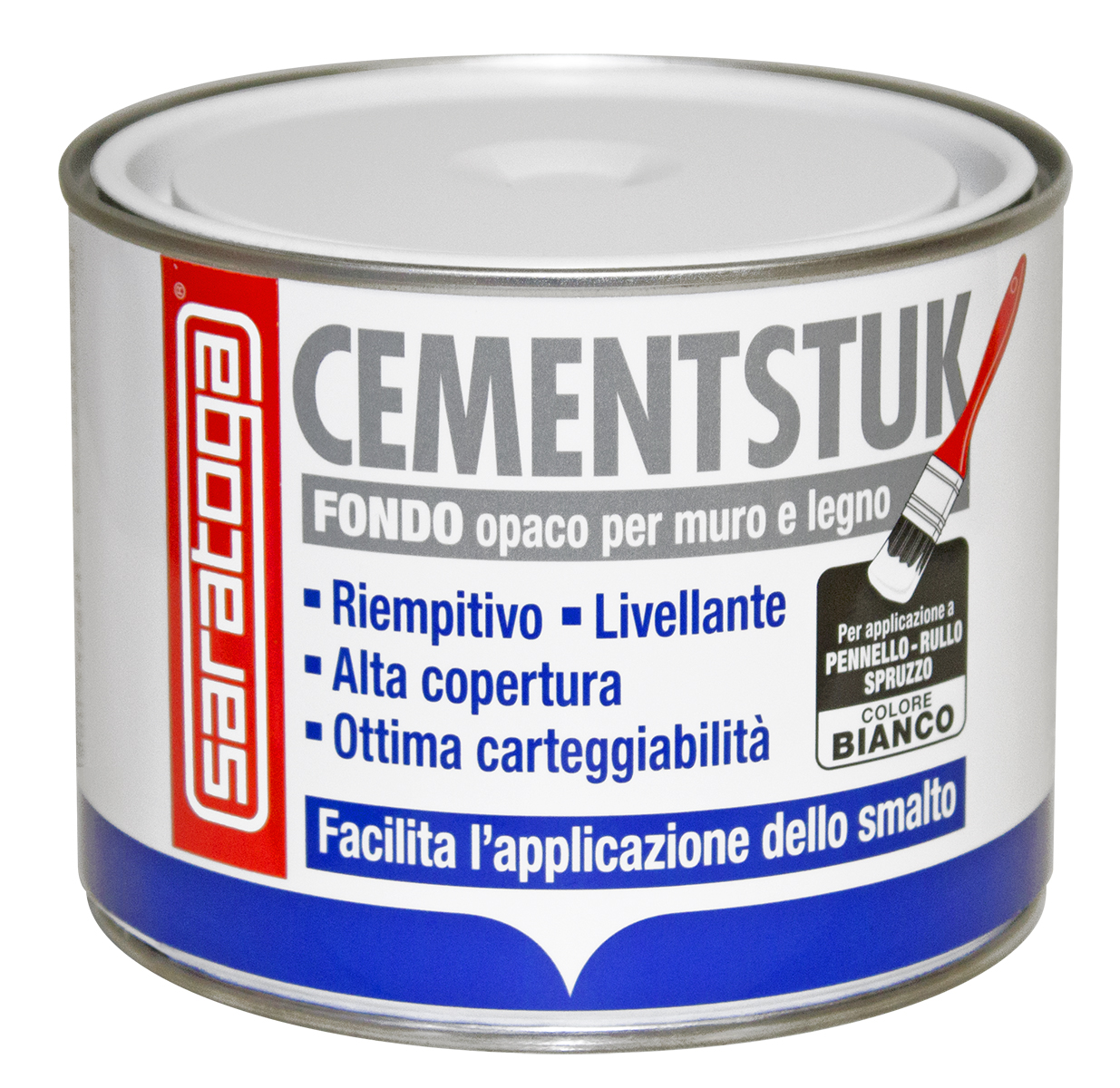 Cemenstuk, a base di resine alchidiche, è bianco opaco, di ottima pennellabilità e carteggiatura. Ѐ disponibile in barattolo da 500 ml e può essere applicato a pennello, a rullo o a spruzzo.