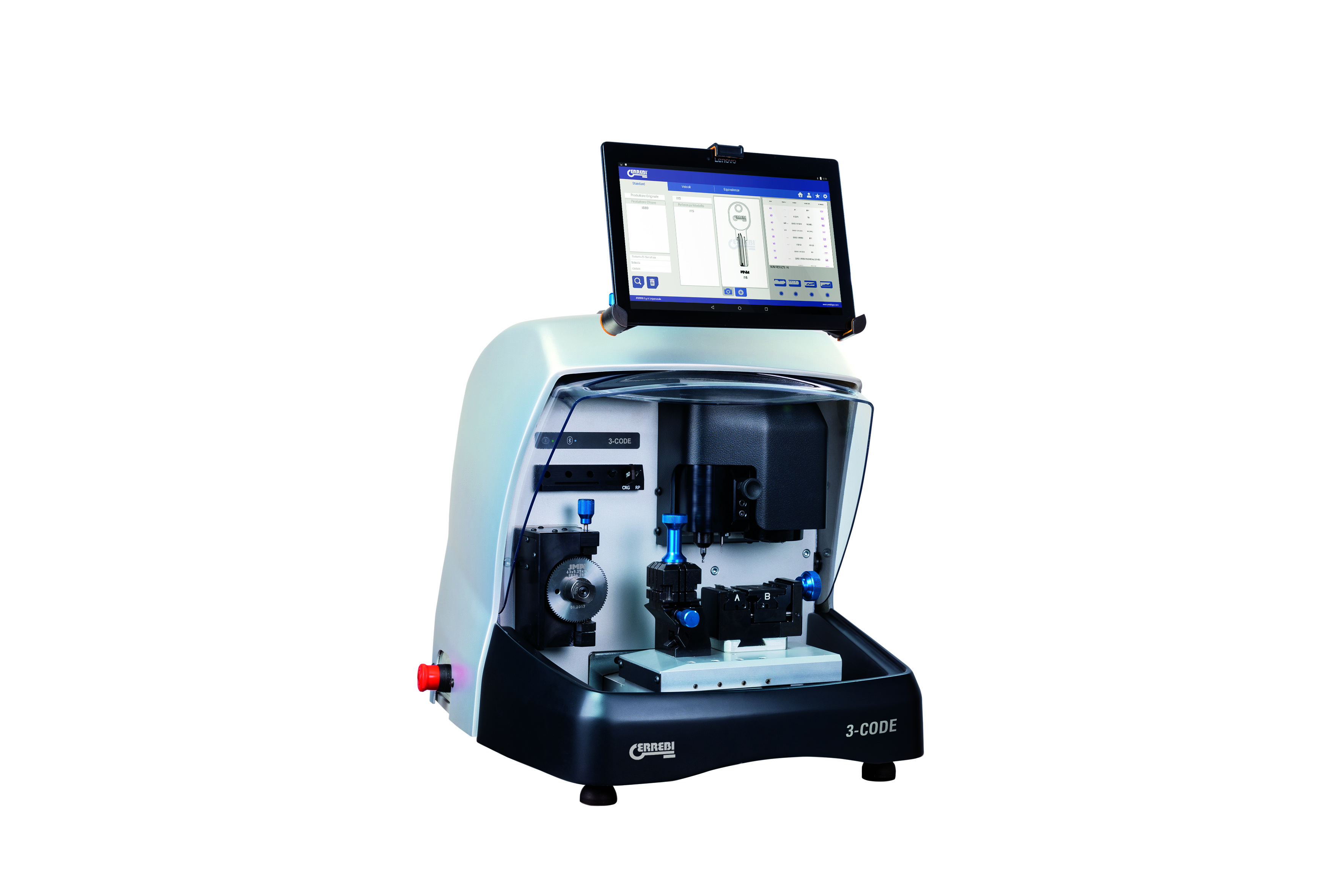 Errebi permette di duplicare chiavi piatte, di sicurezza e di veicoli. Veloce e potente, include un tablet con App che fornisce copia del catalogo Errebi con relative equivalenze.