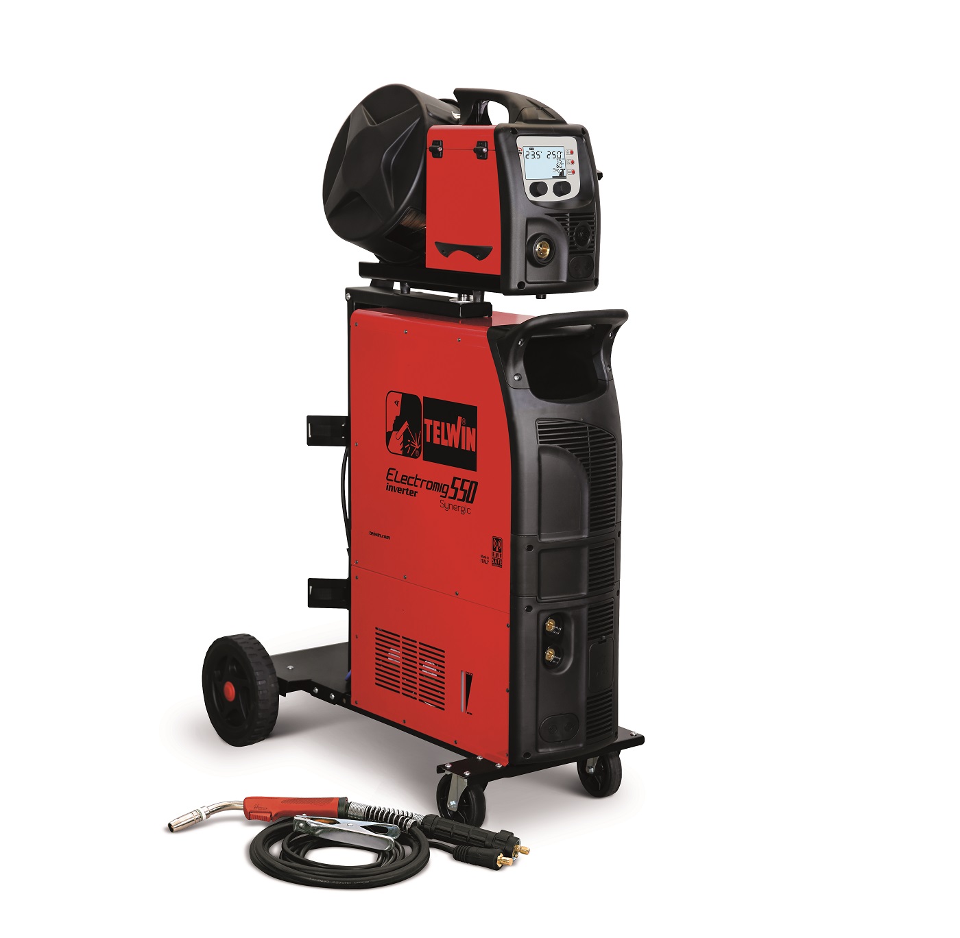 Electromig 550 Synergic 230/400V + acc. (art. 816093) è una saldatrice inverter multiprocesso MIG-MAG/ FLUX/ BRAZING/ MMA e TIG DC-Lift controllata a microprocessore, con trainafilo a 4 rulli. Offre flessibilità d'impiego con diversi materiali saldati (acciaio, acciaio inox, alluminio) o saldobrasati (lamiere galvanizzate). Permette una larga varietà di campi d'applicazione, dall'industria, alla manutenzione, dall'installazione agli interventi in carrozzeria.