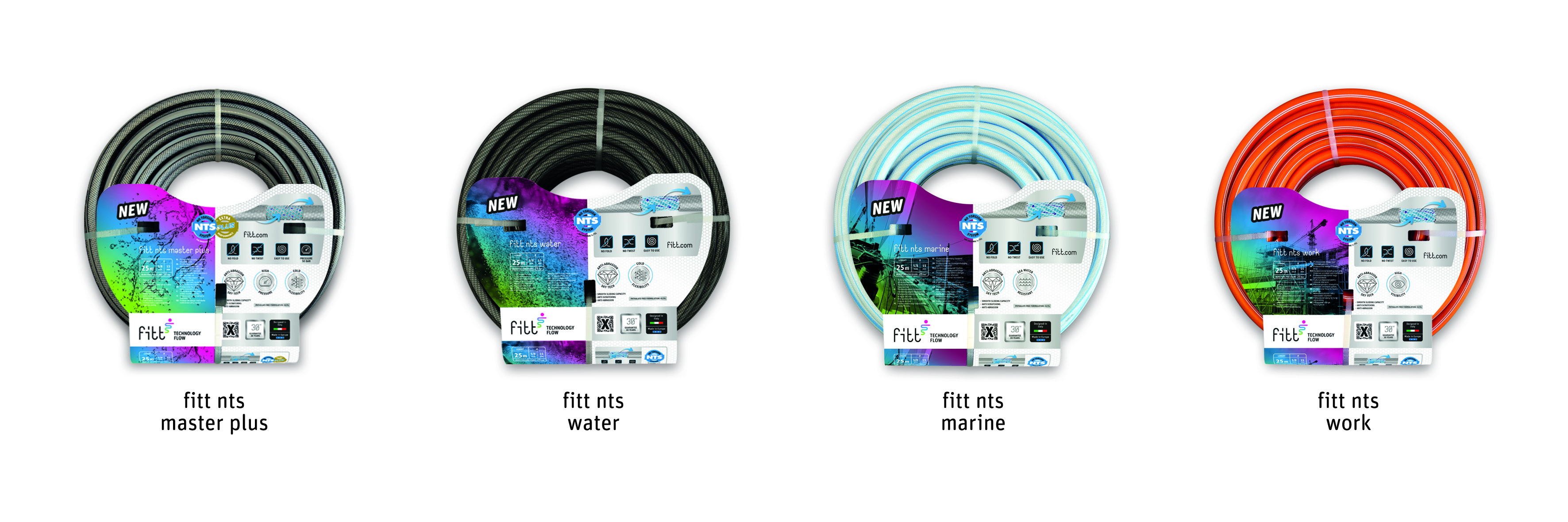 Forte di 50 anni di esperienza nella produzione di soluzioni per il passaggio di fluidi, FITT consolida oggi la tecnologia NTS, sviluppata venticinque anni fa e che ha sancito la leadership tecnologica e di mercato dell’azienda: unico e originale, il No Torsion System assicura al tubo un’elevata malleabilità e facilità di utilizzo che impedisce la formazione di nodi e torsioni, garantendo così un flusso d’acqua continuo. A queste caratteristiche di prodotto si aggiunge oggi la tecnologia SKY TECH, una copertura esterna di sottile strato di tecnopolimero, che fa aumentare la resistenza del tubo ai tagli e alle abrasioni e lo rende estremamente scorrevole e facile da gestire.