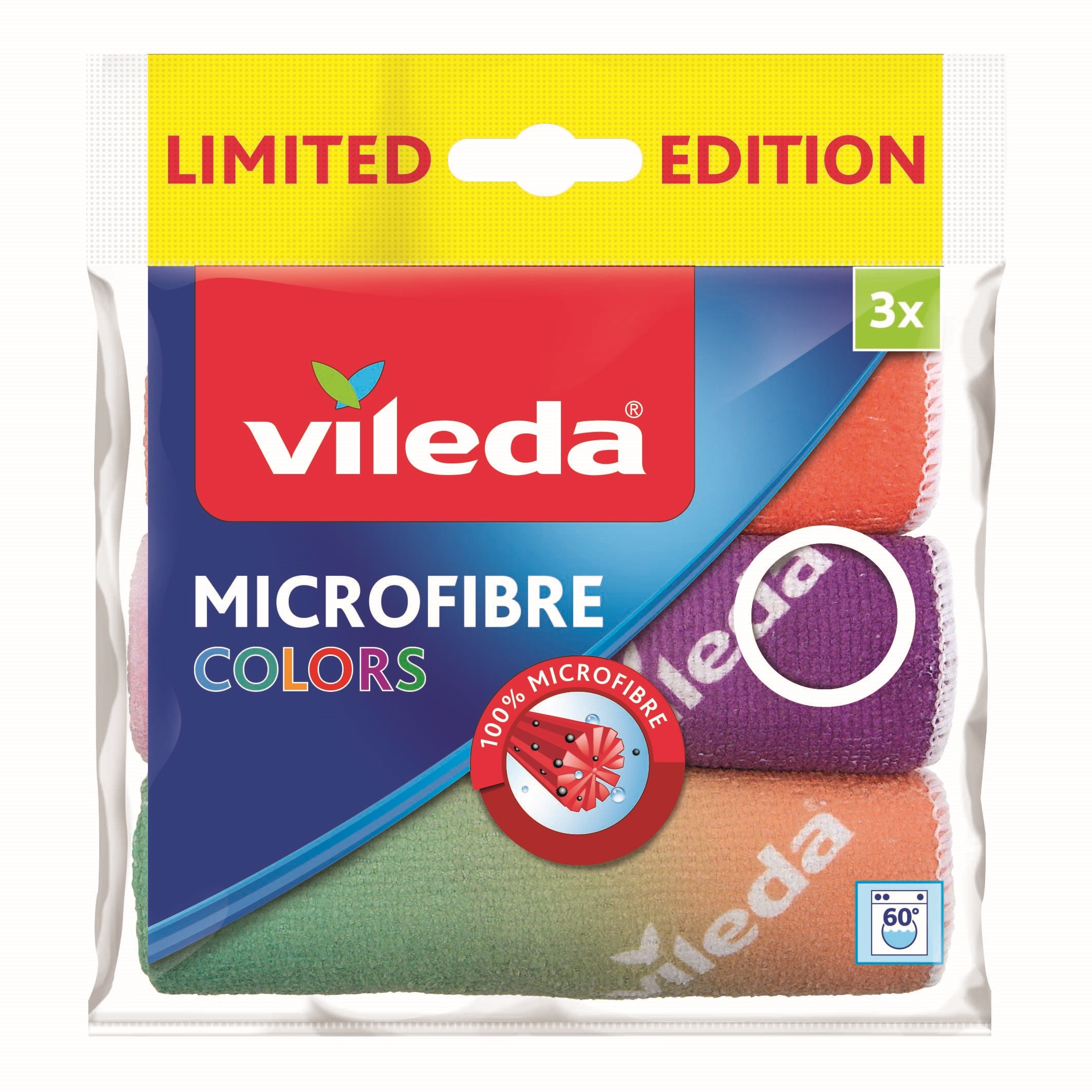 Un tripudio di colore per i panni multiuso Vileda, che combinano design esclusivo ed elevate prestazioni pulenti. I panni multiuso Vileda Microfibre Colors 3 pezzi combinano le elevate prestazioni pulenti garantite dalla migliore microfibra Vileda al pratico formato multipack di 3 panni, dal design esclusivo e dai colori diversi, moderni e accattivanti, per donare un tocco di vivacità in casa e per consentire di differenziarne l’utilizzo nei vari ambienti domestici. Realizzati al 100% in microfibra, sono ideali per pulire efficacemente qualsiasi tipo di superficie, anche senza l’uso di detergenti, assicurando la massima resistenza e durata nel tempo. I panni di Vileda Microfibre Colors 3 pezzi sono lavabili in lavatrice con ciclo normale fino a 60°.
