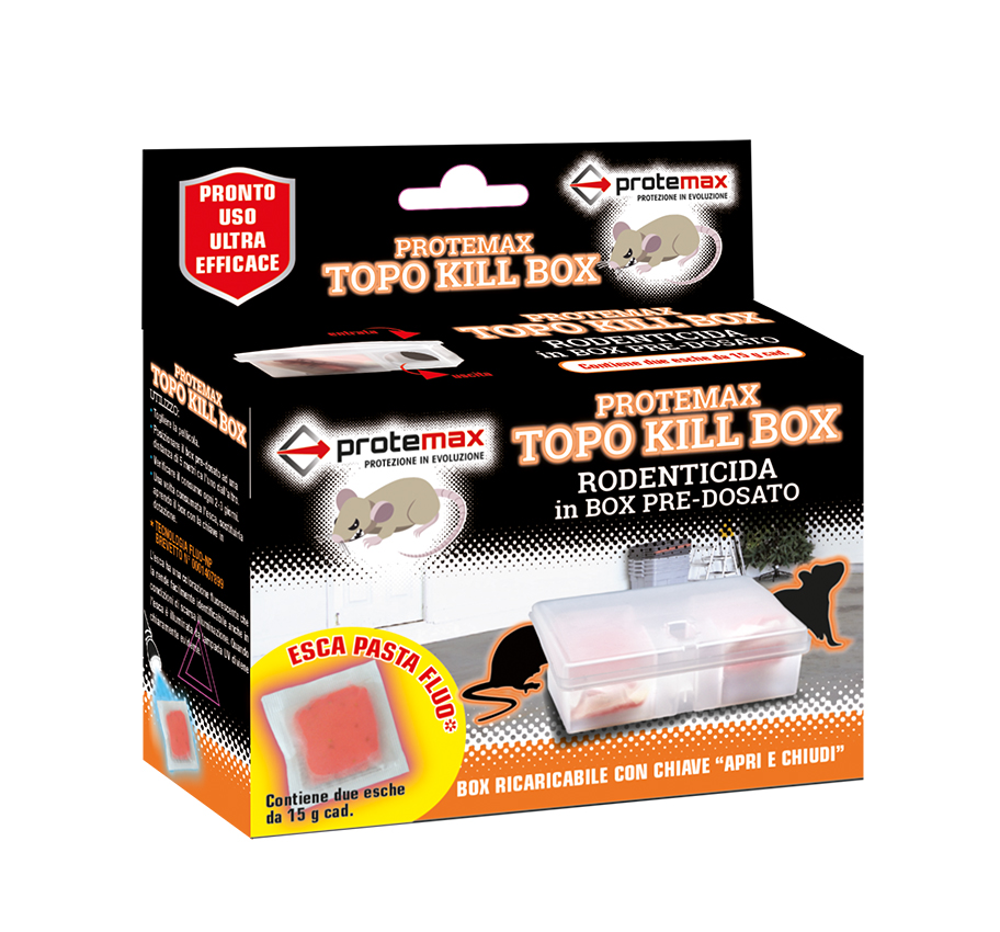 L’innovazione è parte integrante dell’offerta dei topicidi Protemax che quest’anno si arricchisce di un nuovo prodotto: TOPO KILL BOX, un rodenticida in box predosato, una risposta per coloro che cercano una soluzione pronto uso, facile, veloce ed efficace.