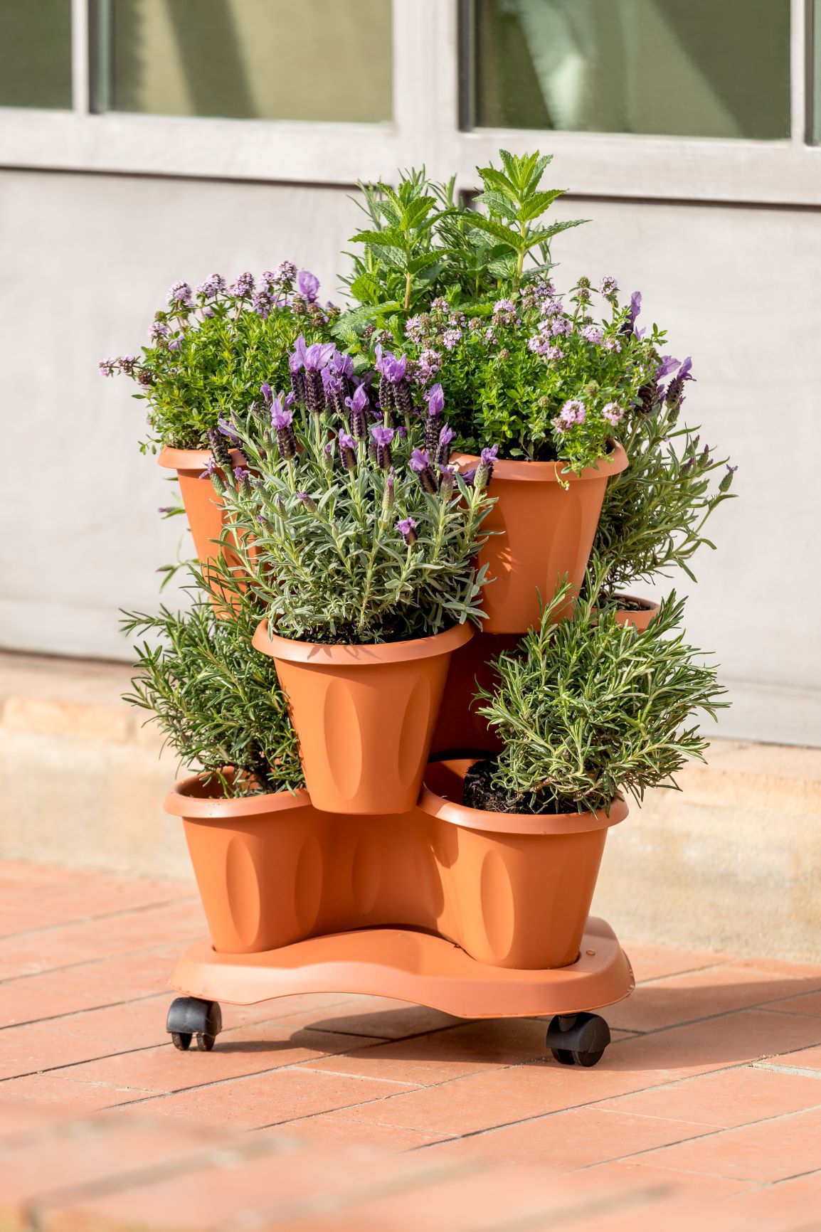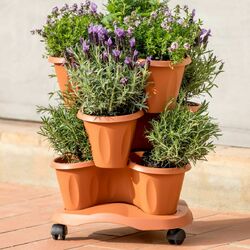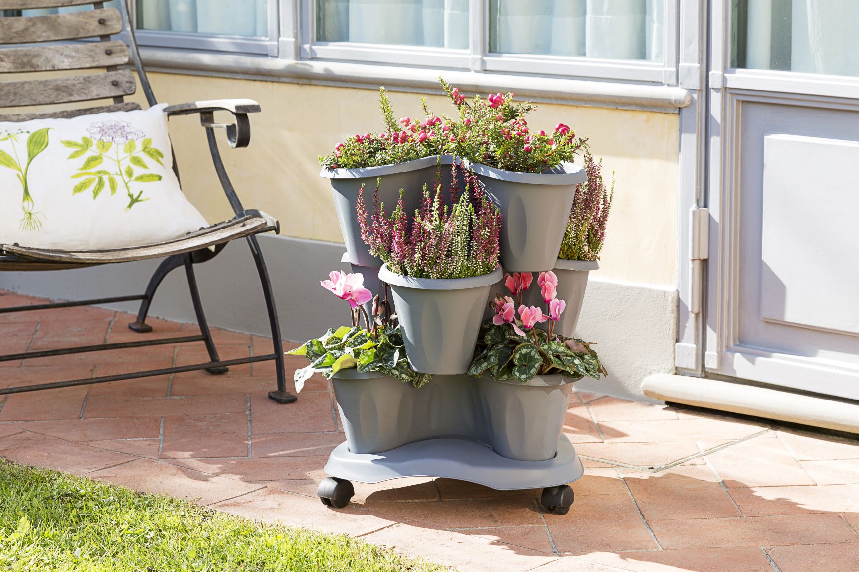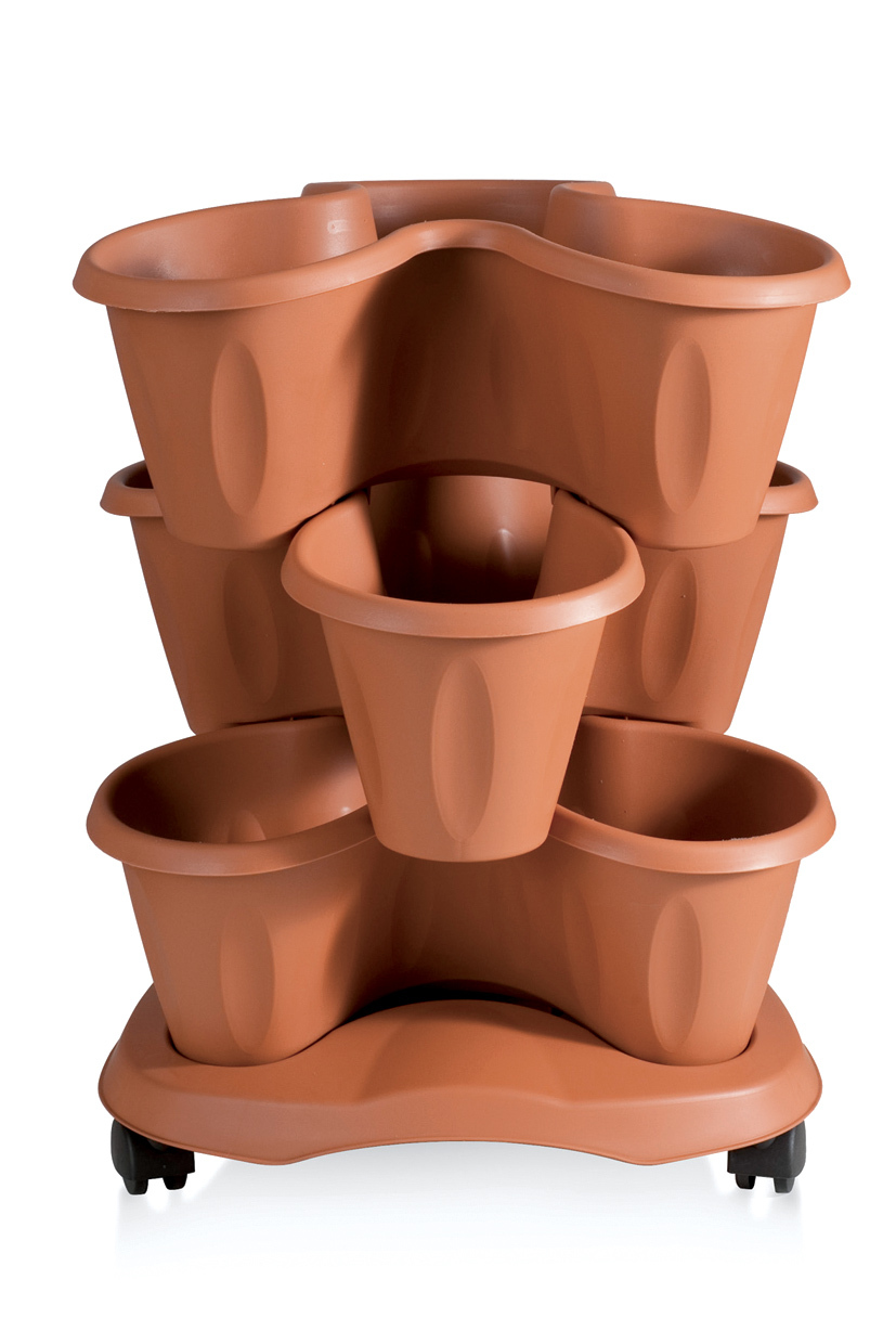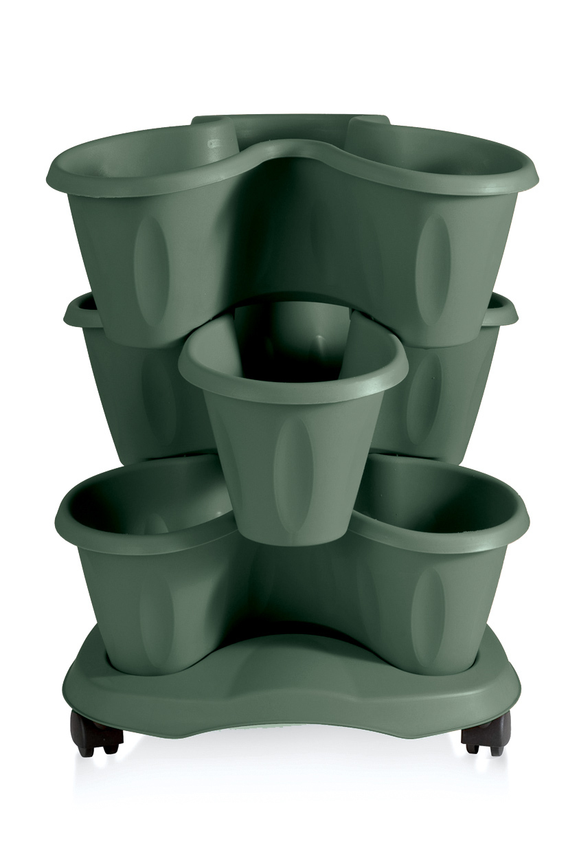 Questo modello permette la composizione di piante su più livelli, offrendo quindi un grande appeal estetico. È resistente agli sbalzi di temperatura, agli urti e ai raggi solari ed è disponibile in 3 diverse colorazioni a scelta: Grigio Terracotta e Verde.