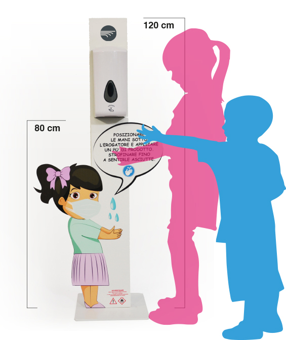 Eurostands, azienda operante nel settore fieristico da qualche mese impegnata in prima linea per garantire la sicurezza dei lavoratori, ha deciso di allargare la sua linea di prodotti COVISTOP anche ai più piccoli ideando e commercializzando COVISTOP T Sanitizer Kids, un distributore automatico di gel igienizzante a misura di bambino. Grazie al design semplice e lineare e a un linguaggio chiaro ed efficace, la colonnina colorata dialoga con i bambini aiutandoli a capire l’importanza di un gesto semplice, come quello dell’igienizzazione delle mani, destinato a diventare parte della loro nuova routine quotidiana.
