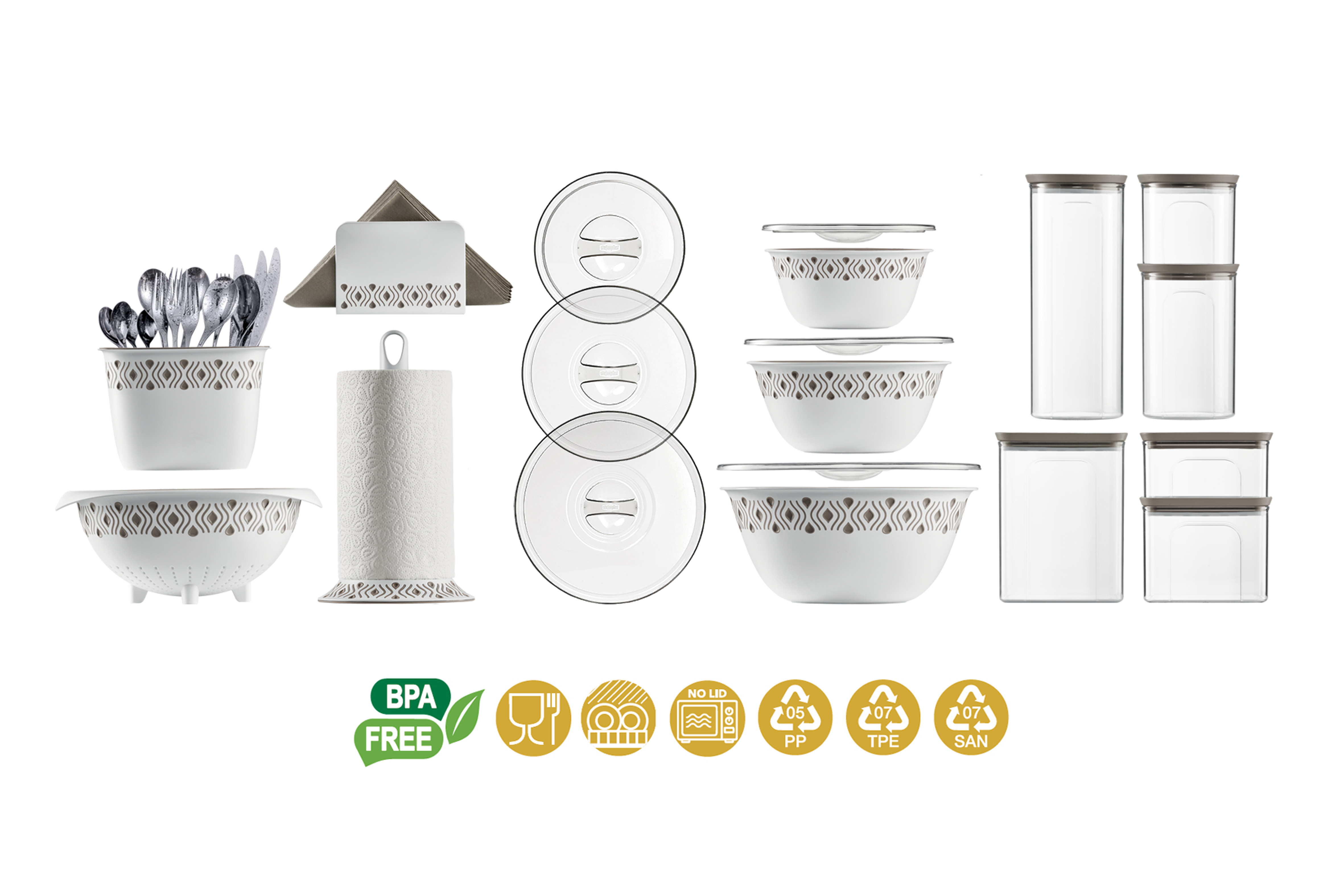 - Ciotole e coperchi salva freschezza: Ø 19 cm, Ø 23 cm, Ø 29 cm