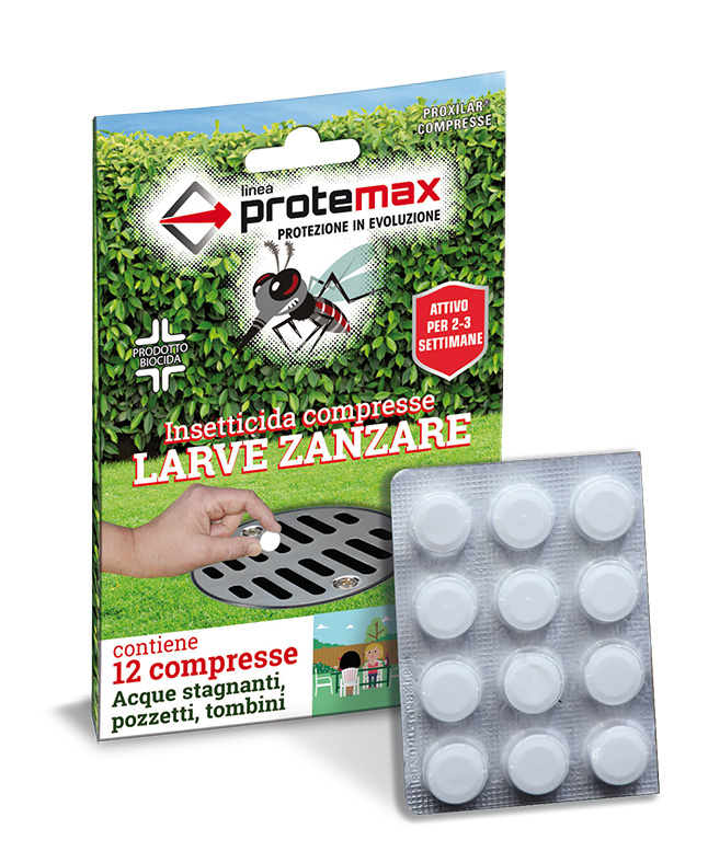 In prevenzione Protemax propone un prodotto efficace e sostenibile per sconfiggere sul nascere questo problema: Insetticida Compresse Larve Zanzare.