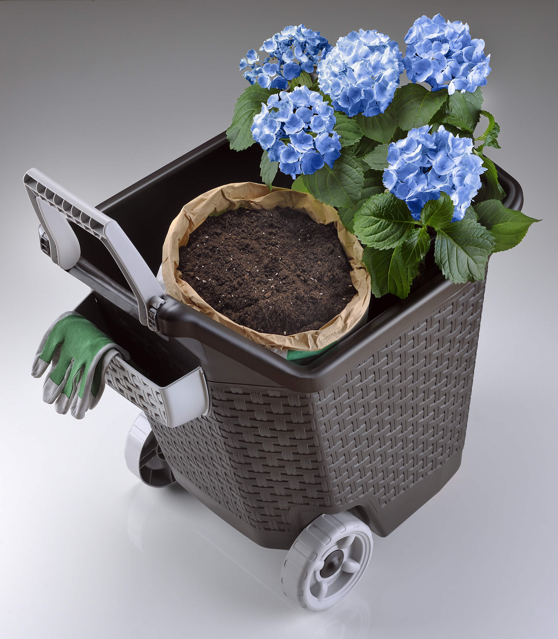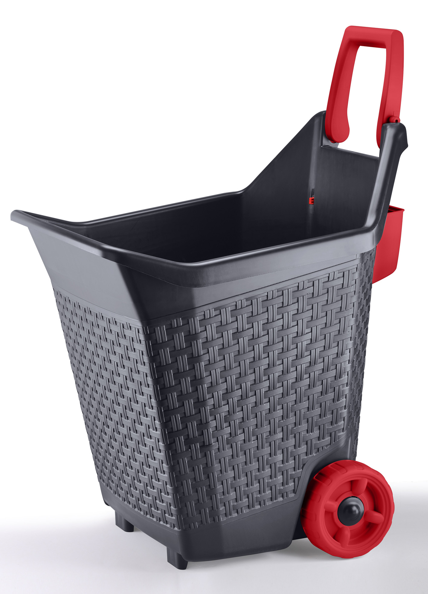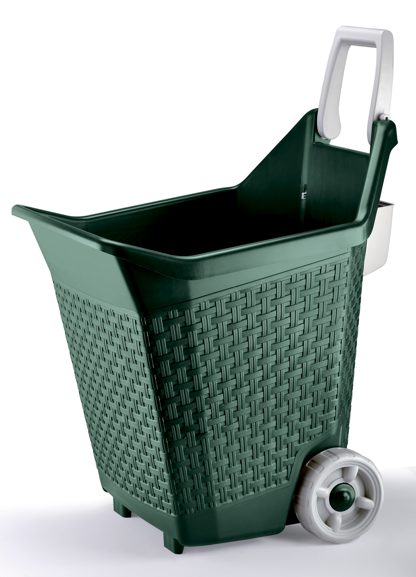 Dotato di una pratica maniglia e di grandi ruote che ne facilitano lo scorrimento anche sul prato, il garden trolley può essere impiegato per trasportare terra, concimi e piante con la massima facilità, per raccogliere potature o negli allevamenti per distribuire mangimi agli animali. Una pratica tasca portaoggetti permette inoltre di avere sempre a disposizione tutto il necessario per il giardinaggio.