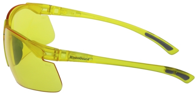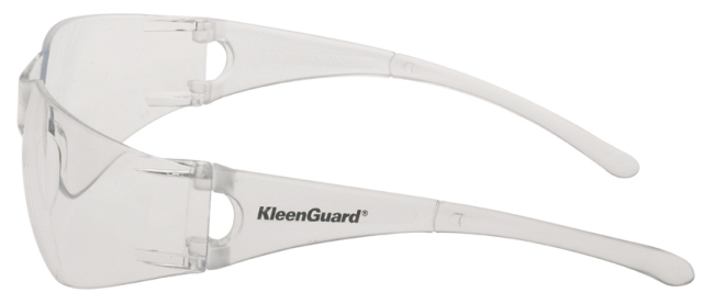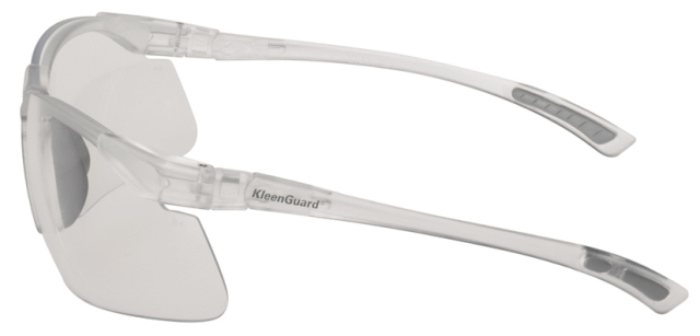 Gli occhiali Kleenguard V40 offrono eccellente fattore di protezione, oltre a uno stile elegante e confortevole. Le lenti, realizzate in policarbonato resistente agli impatti, sono disponibili in cinque diverse versioni: trasparenti antiappannamento per ridurre l’effetto condensa, scure per utilizzo in esterno, ambrate per un buon contrasto anche con scarsa luminosità, interno/esterno per ridurre i riflessi, e a specchio argentata che riduce la quantità di luce e calore che attraversa la lente. Il comfort è garantito dal morbido nasello regolabile, dalla barra frontale imbottita e dalle asticelle a doppia sagomatura. L’adesione alla zona temporale è regolabile in base alle lenti utilizzate, garantendo così maggiore protezione e sicurezza.
