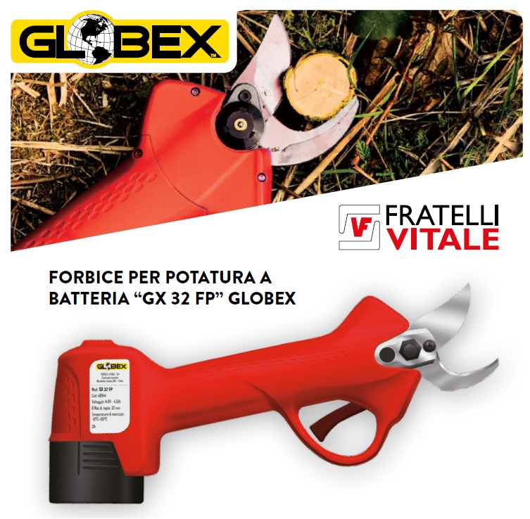 Fratelli Vitale ha realizzato, a marchio Globex, un prodotto straordinario per la potatura di piante da giardino, alberi da frutto e vigneti con una potenza di 255W e motore Brushless.